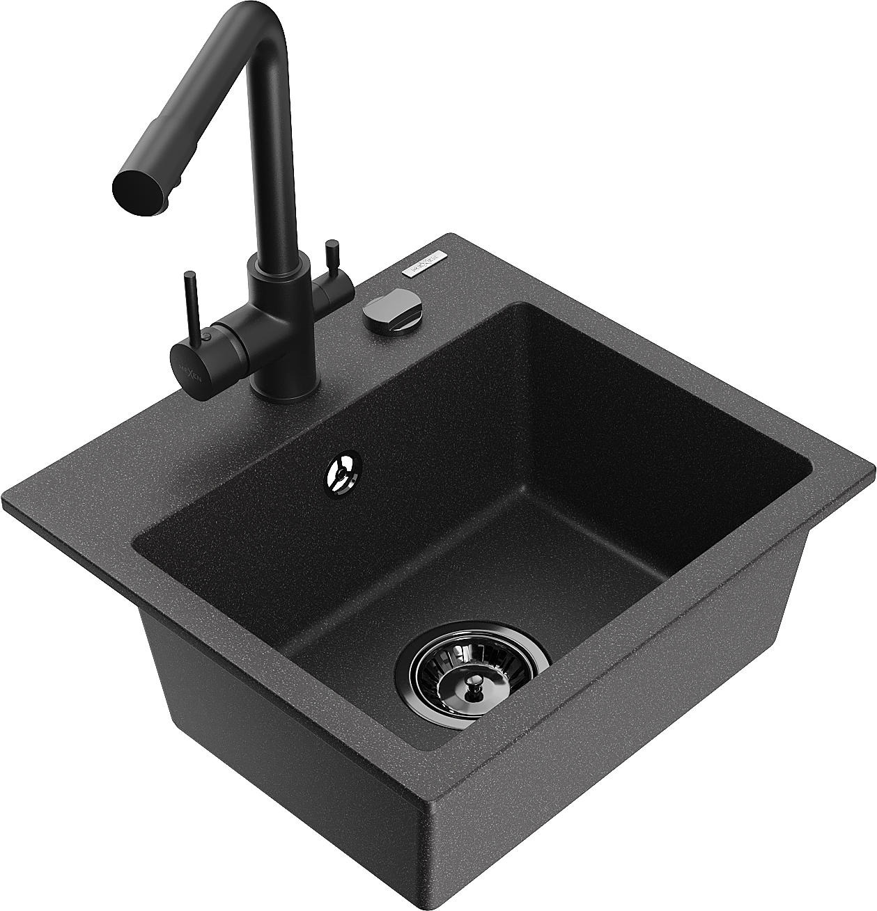 Mexen Milo évier en granit 1 bac avec robinet de cuisine Duero, noir moucheté - 6505-76-671600-70-B