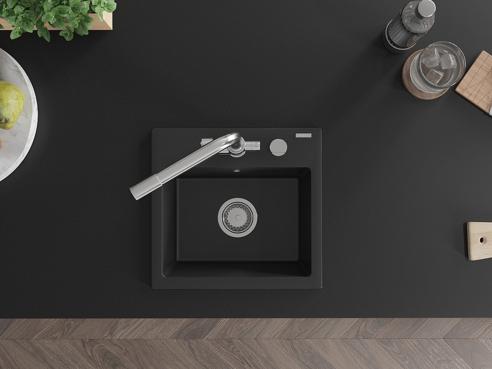 Mexen Milo évier de cuisine en granit à 1 bac avec robinet de cuisine Duero, noir - 6505-77-671600-00