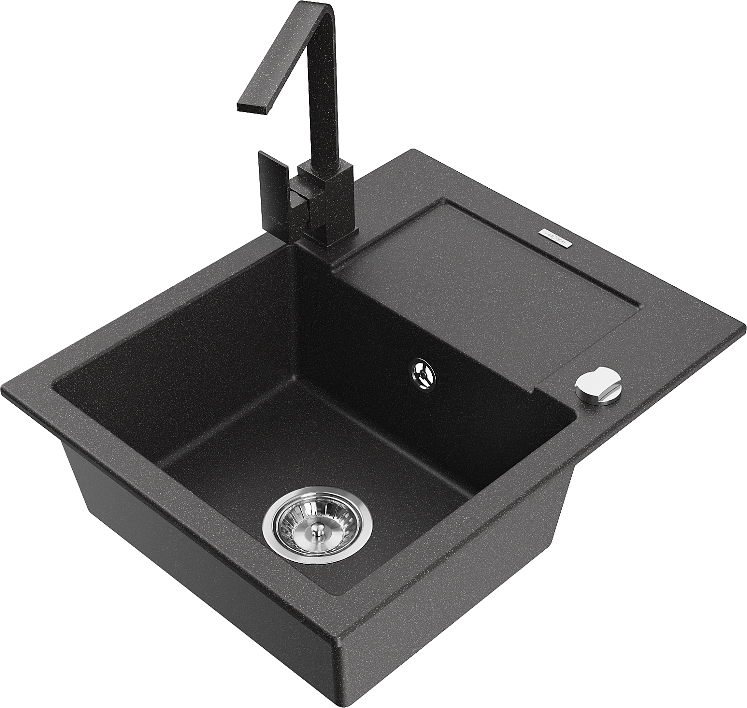 Mexen Enzo évier en granit 1 bac avec égouttoir et robinet de cuisine Rita, noir moucheté - 6506-76-670300-76
