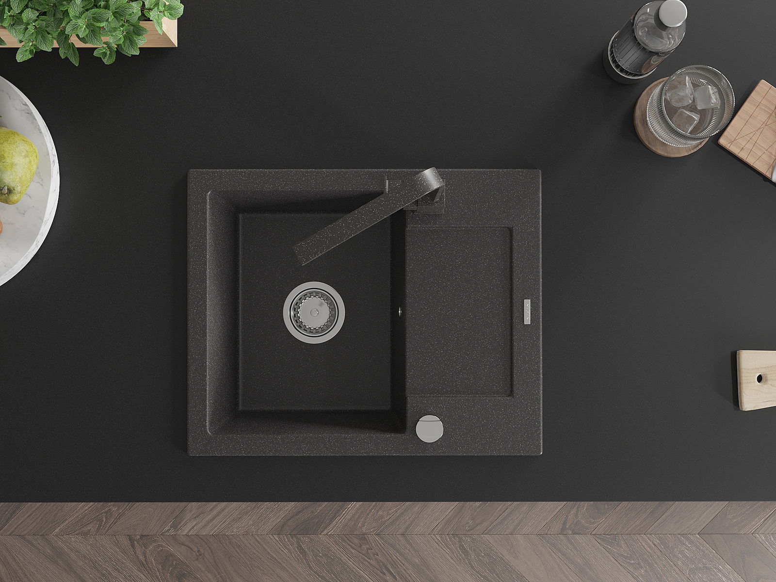 L'évier a été fabriqué en granit de haute qualité. Il constitue un complément élégant et surtout pratique à toute cuisine, quel que soit son style. La haute qualité et la durabilité du granit garantissent une utilisation pendant de nombreuses années.