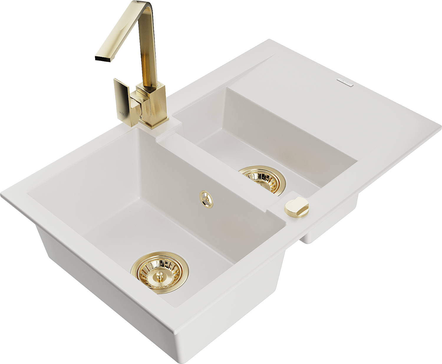 Mexen Gaspar évier en granit 1,5 bacs avec égouttoir et robinet de cuisine Rita, blanc - 6507-20-670300-50