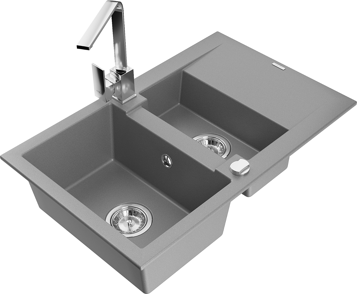 Mexen Gaspar évier en granit 1,5 bac avec égouttoir et robinet de cuisine Rita, gris - 6507-71-670300-00