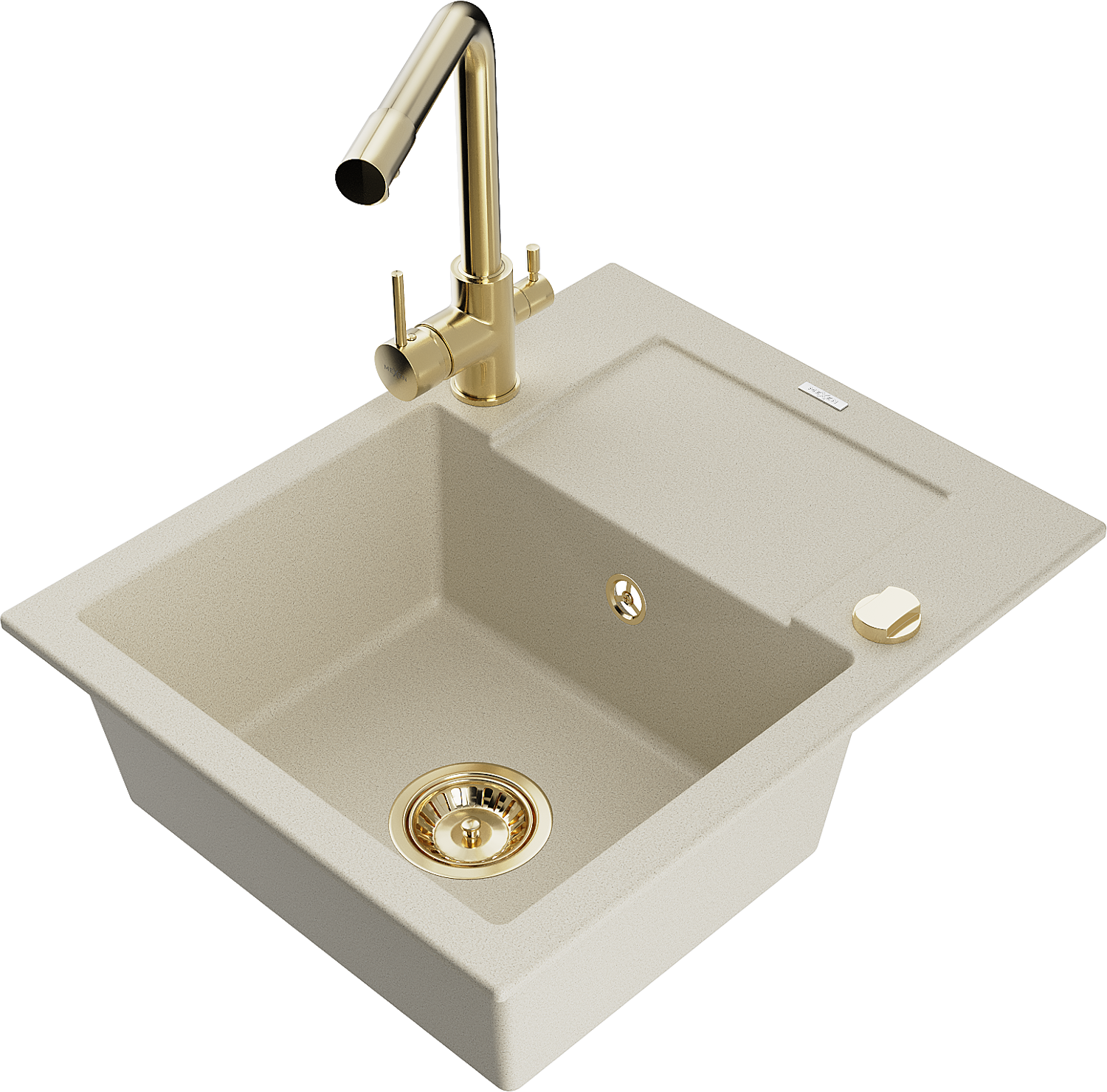 Mexen Enzo évier en granit 1 bac avec égouttoir et robinet de cuisine Duero, beige - 6506-69-671600-50
