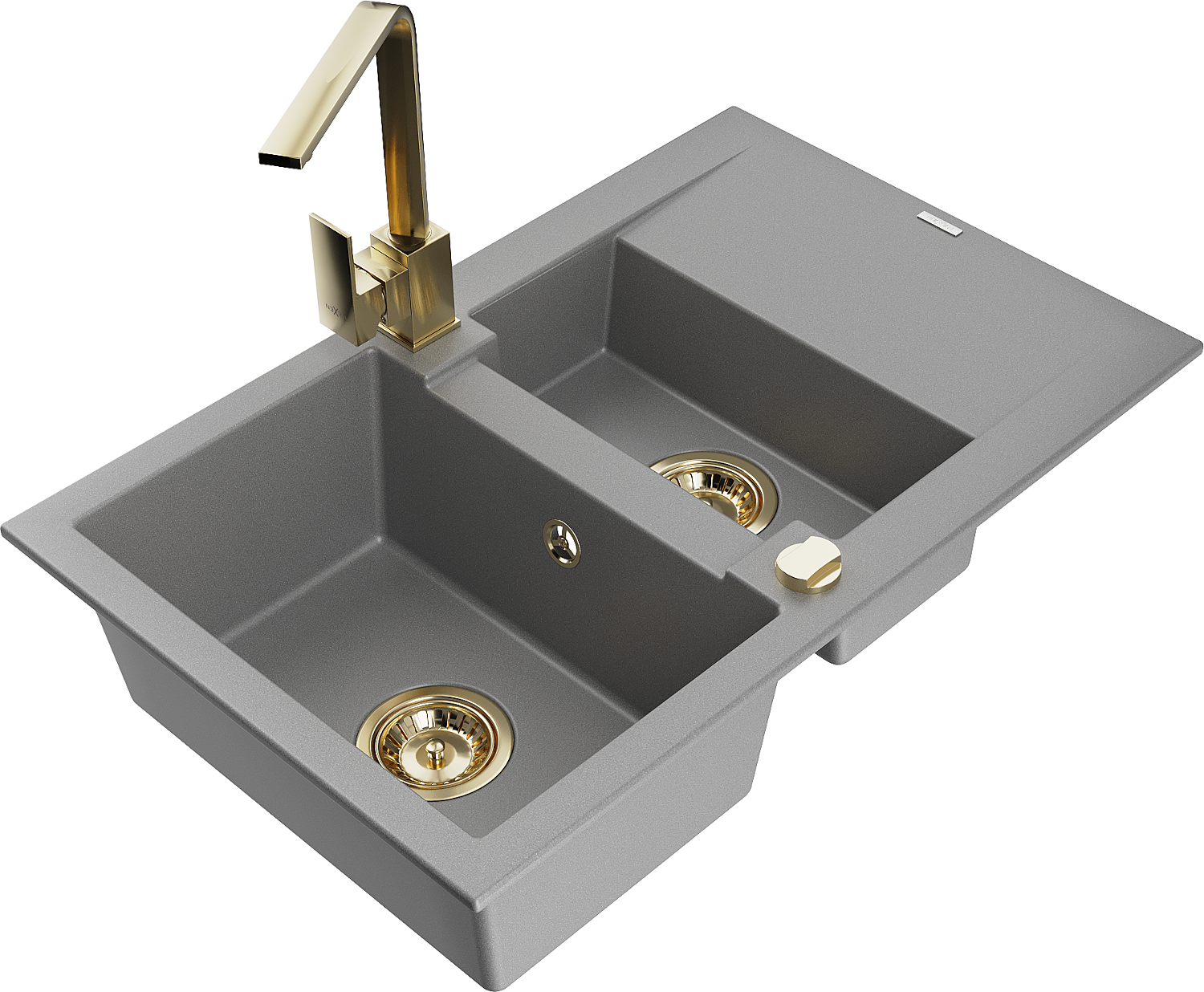 Mexen Gaspar évier en granit à 1,5 bac avec égouttoir et robinet de cuisine Rita, gris - 6507-71-670300-50
