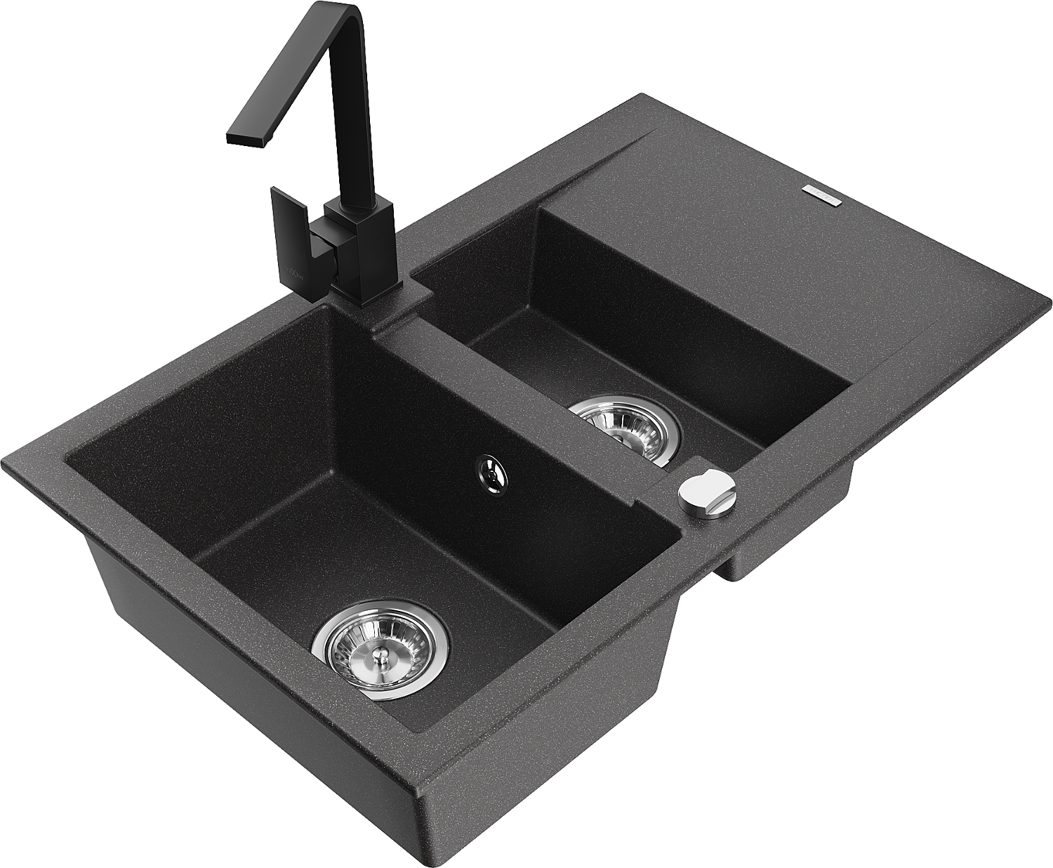 Mexen Gaspar évier en granit 1,5 bac avec égouttoir et robinet de cuisine Rita, noir moucheté - 6507-76-670300-70