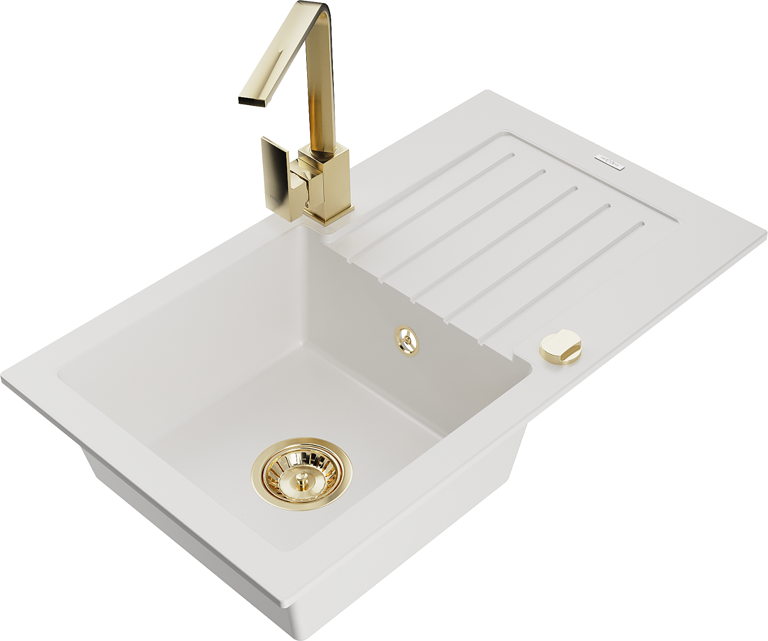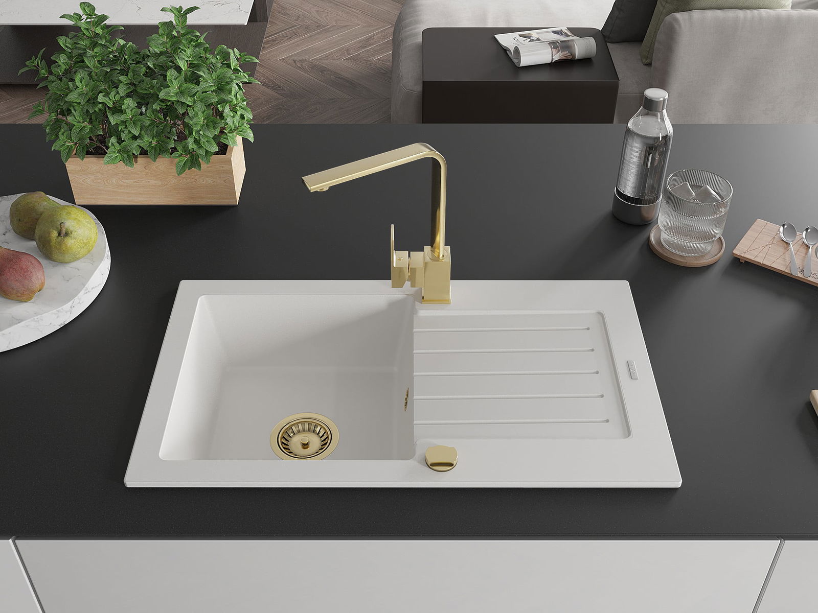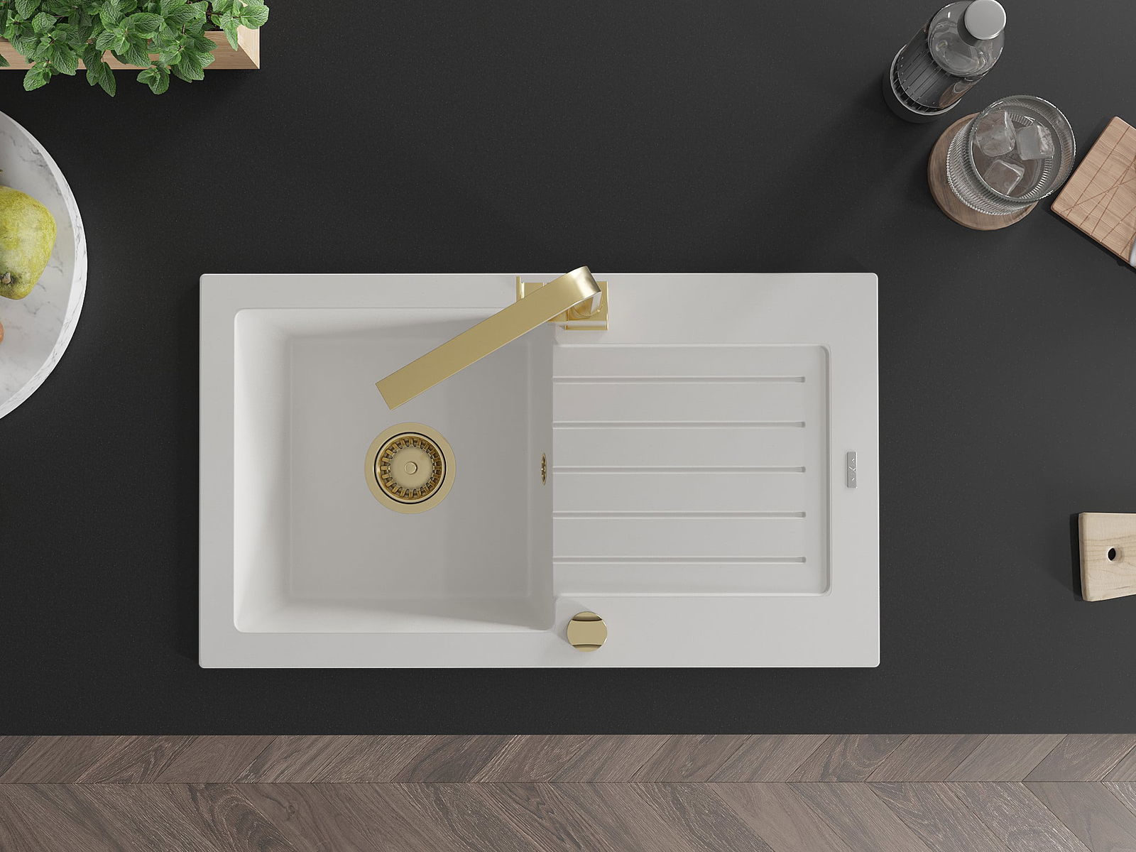 Mexen Pablo évier en granit à 1 bac avec égouttoir et robinet de cuisine Rita, blanc - 6510-20-670300-50