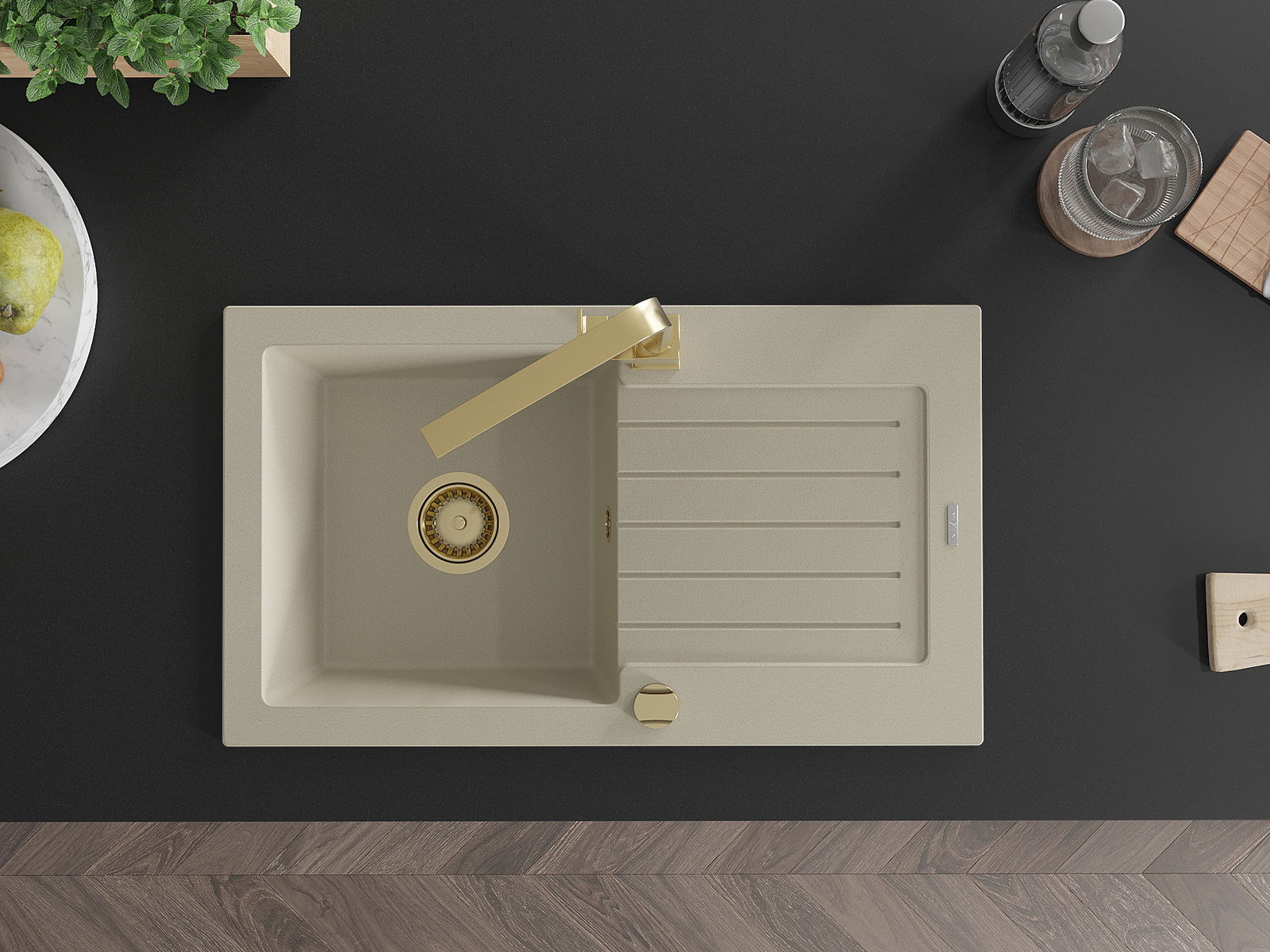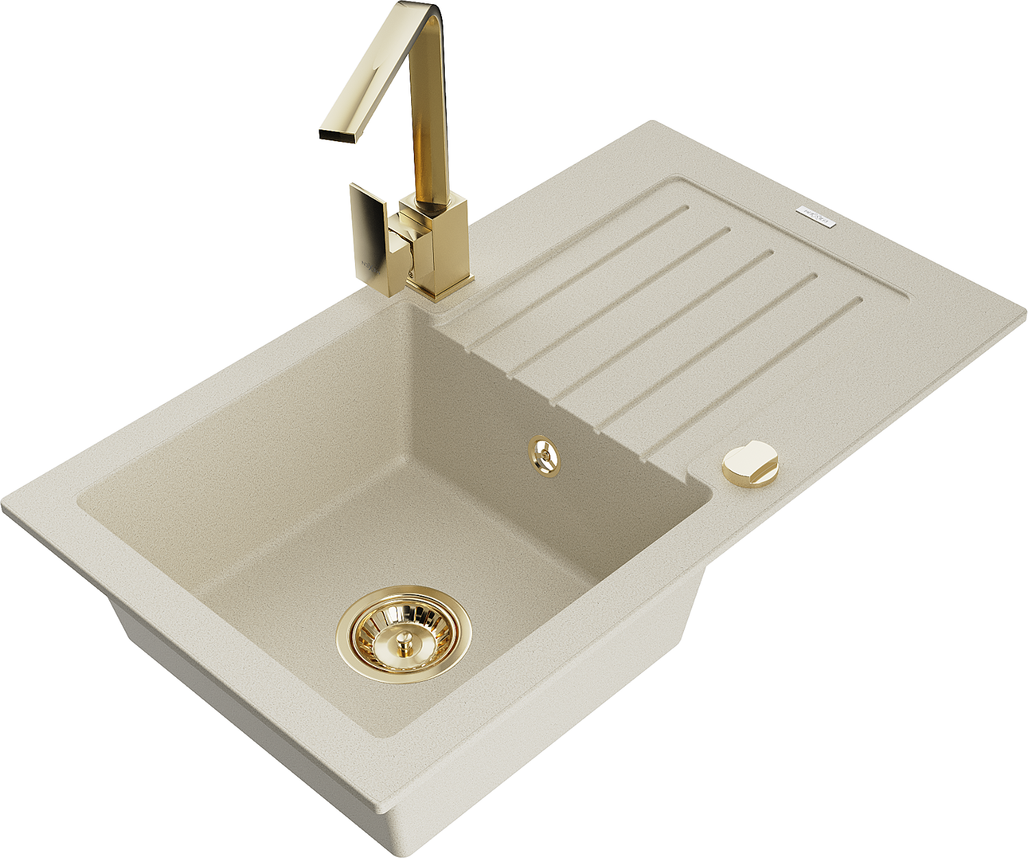 Mexen Pablo éviers en granit à 1 bac avec égouttoir et mitigeur de cuisine Rita, beige - 6510-69-670300-50