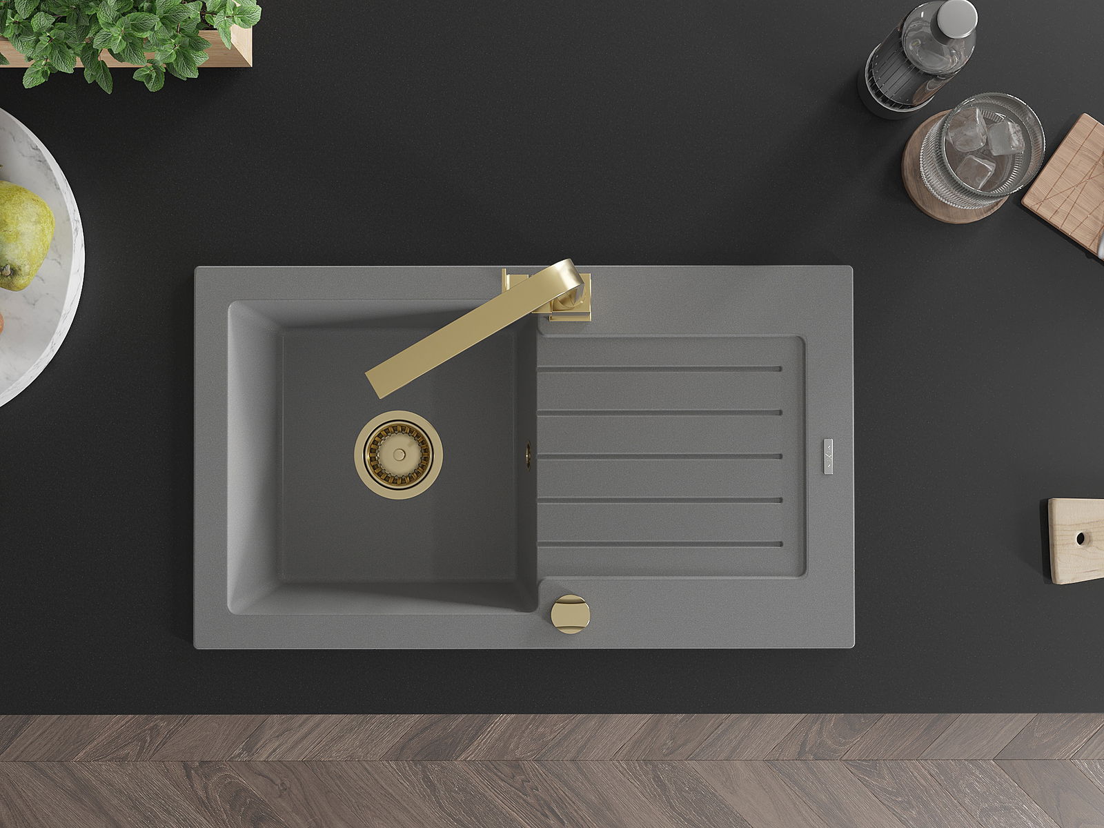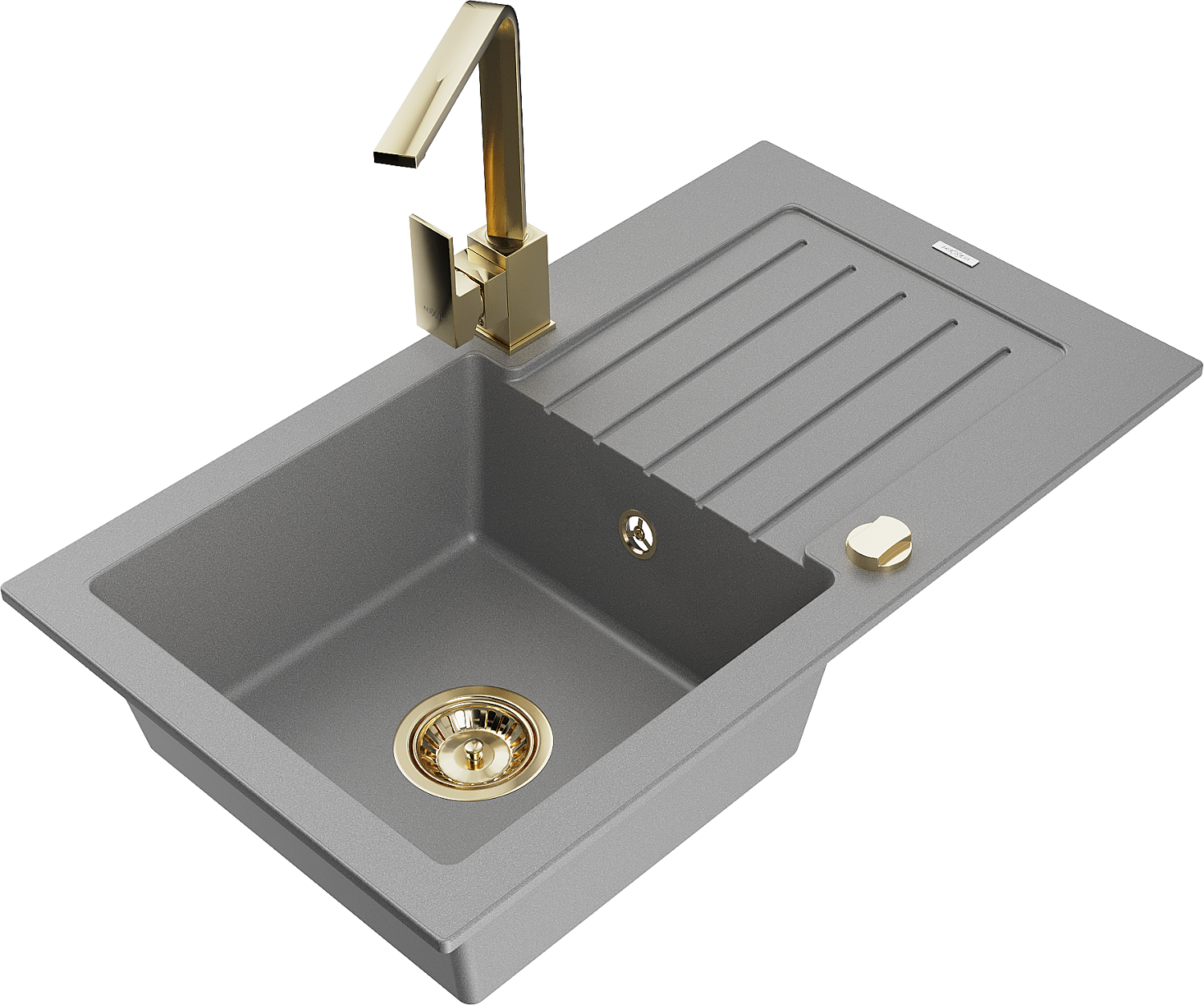 Mexen Pablo évier en granit à 1 bac avec égouttoir et robinet de cuisine Rita, gris - 6510-71-670300-50