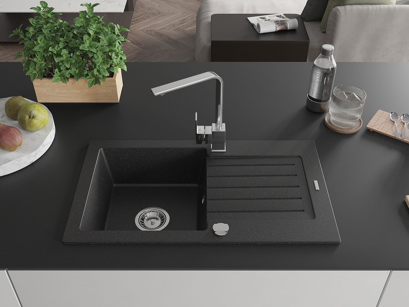 L'évier a été fabriqué en granit de haute qualité. Il constitue un complément élégant et surtout pratique à toute cuisine, quel que soit son style. La haute qualité et la durabilité du granit garantissent une utilisation pendant de nombreuses années.