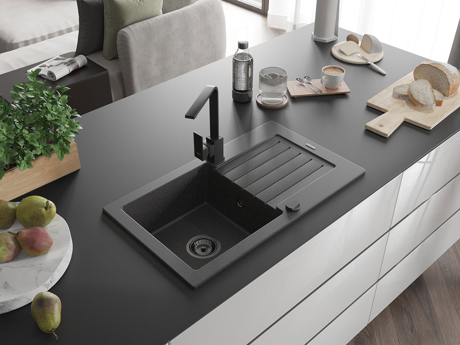 L'évier a été fabriqué en granit de haute qualité. Il constitue un complément élégant et surtout pratique à toute cuisine, quel que soit son style. La haute qualité et la durabilité du granit garantissent une utilisation pendant de nombreuses années.