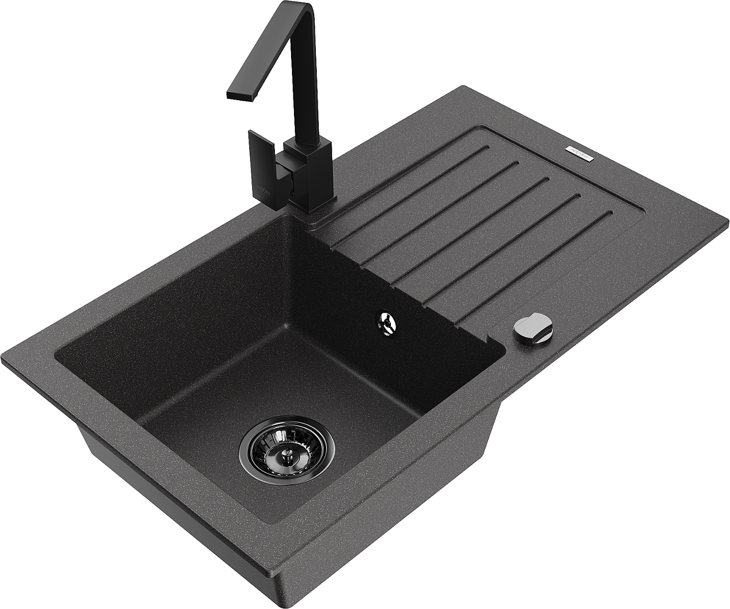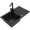 Mexen Pablo évier en granit 1 bac avec égouttoir et robinet de cuisine Rita, noir moucheté - 6510-76-670300-70-B