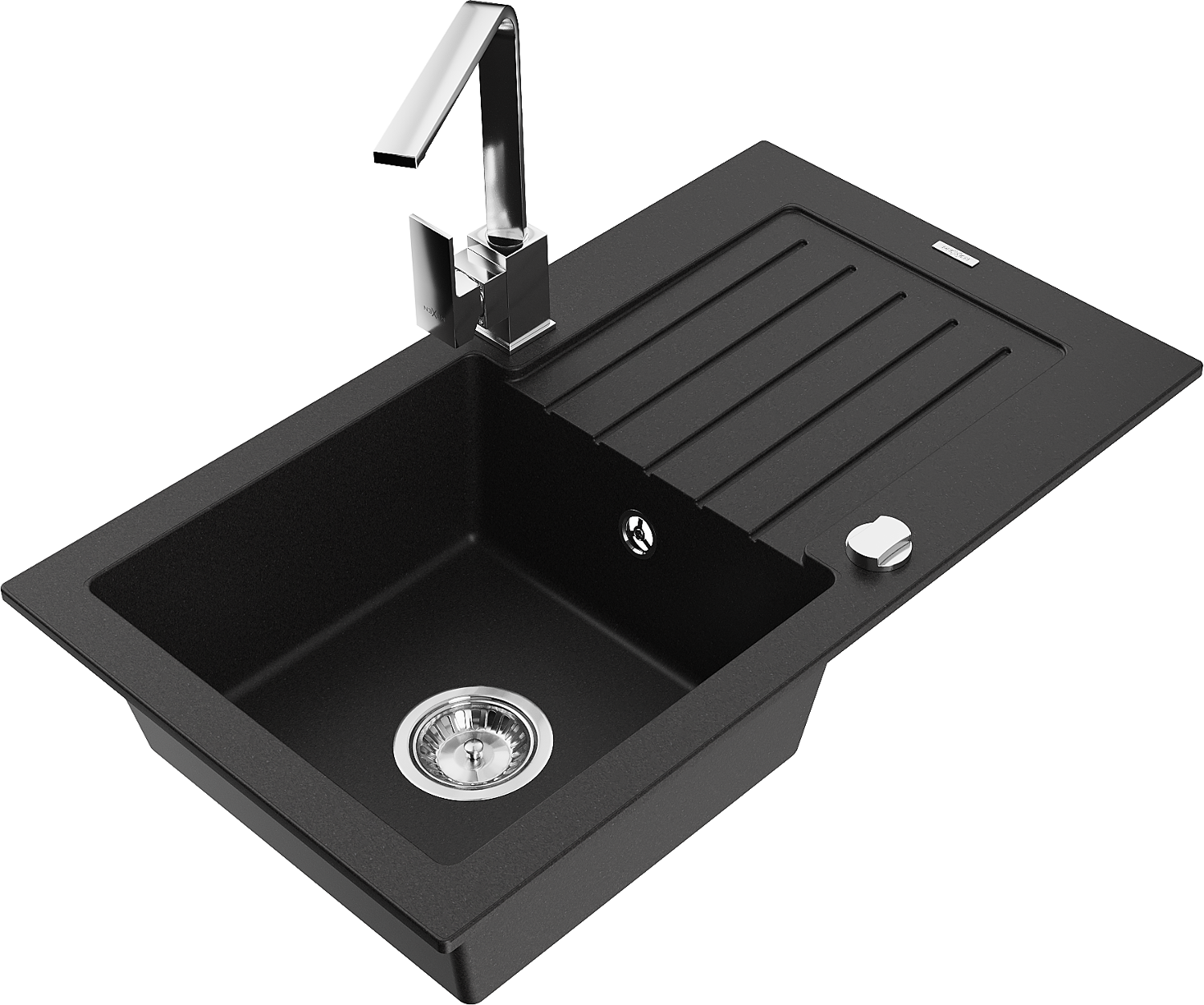 Mexen Pablo évier en granit 1 bac avec égouttoir et robinet de cuisine Rita, noir - 6510-77-670300-00
