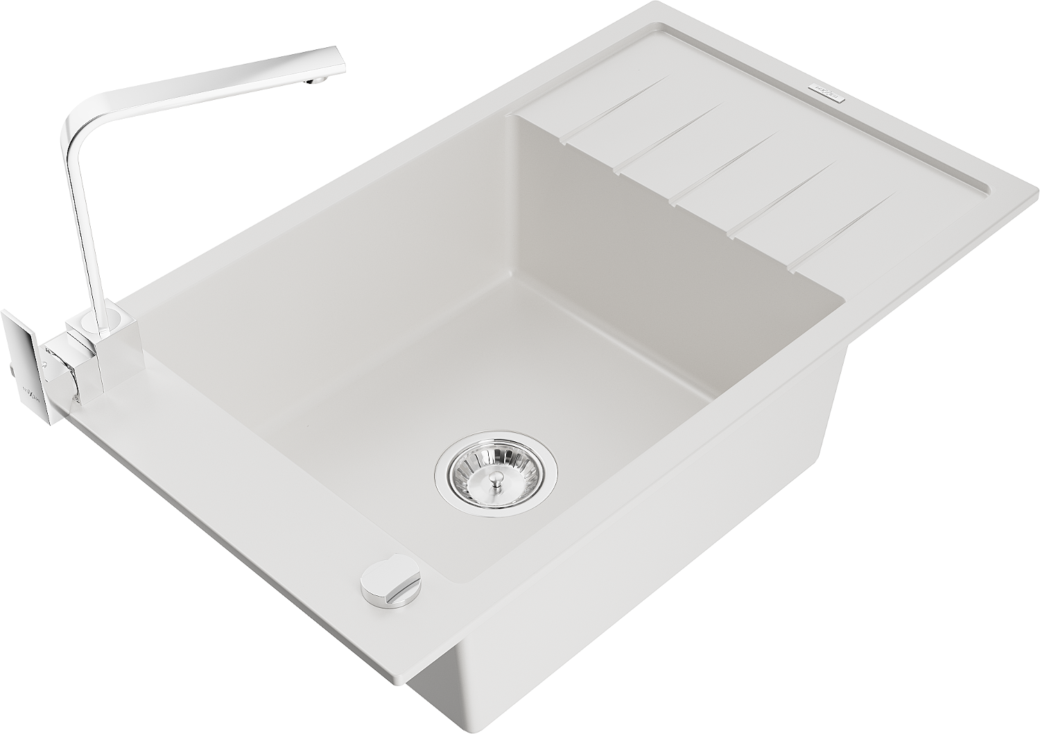 Mexen Elias évier en granit 1 bac avec égouttoir et robinet de cuisine Rita, blanc - 6511-20-670300-00