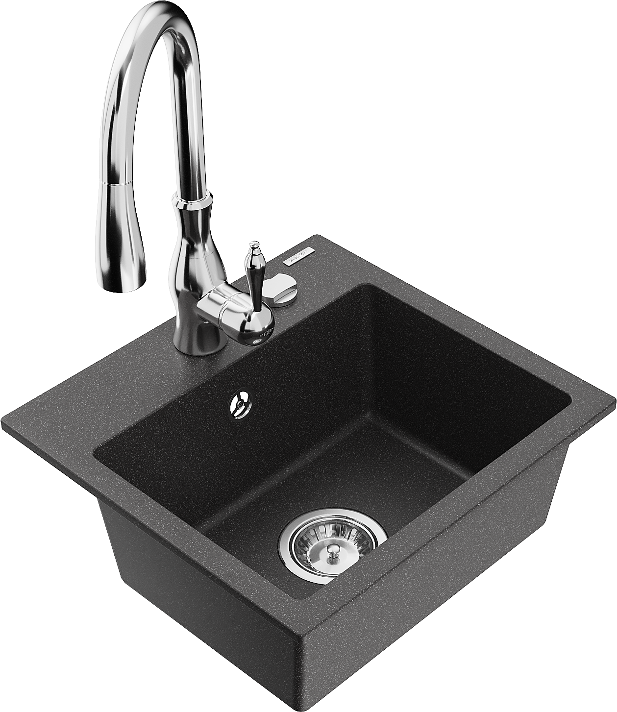 Mexen Milo évier en granit 1 bac avec robinet de cuisine Savita, noir moucheté - 6505-76-672601-00