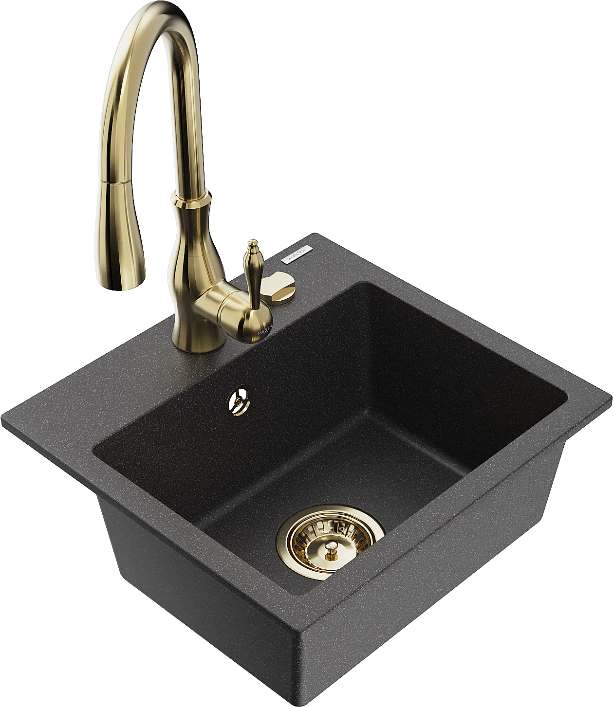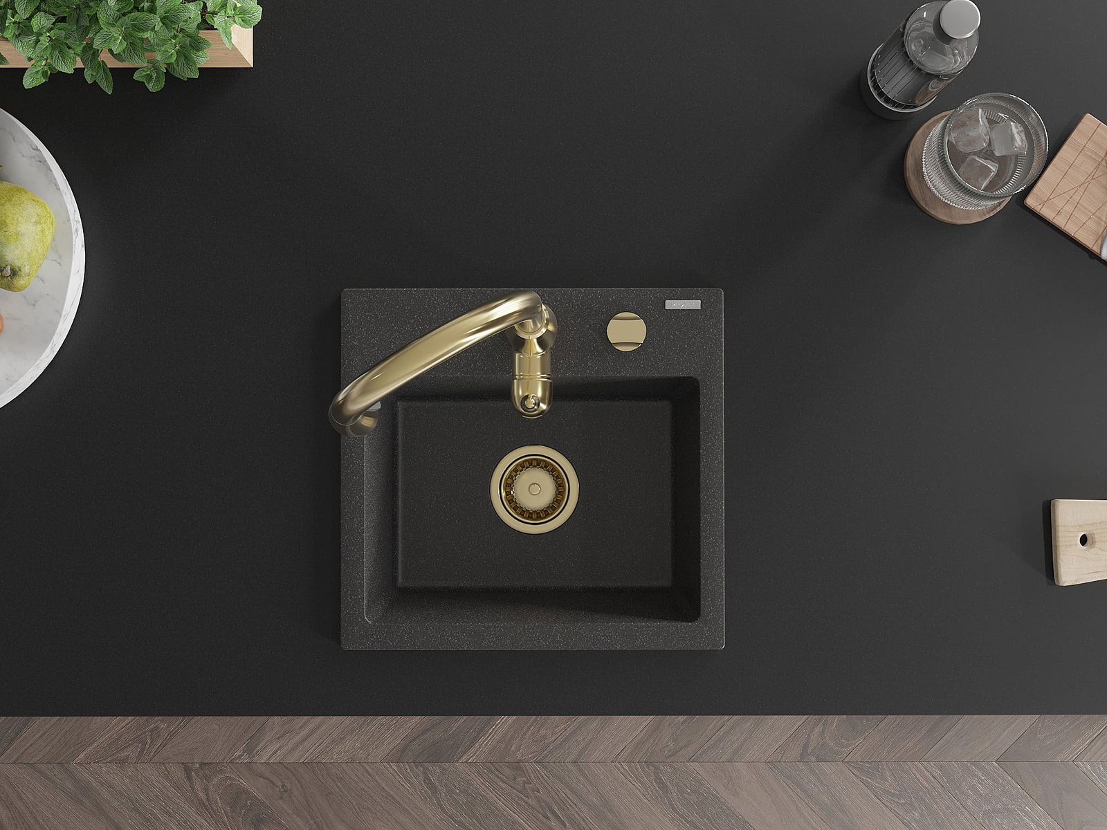 Mexen Milo Évier en Granit à 1 Bac avec Robinet de Cuisine Savita, Noir Tacheté - 6505-76-672601-50