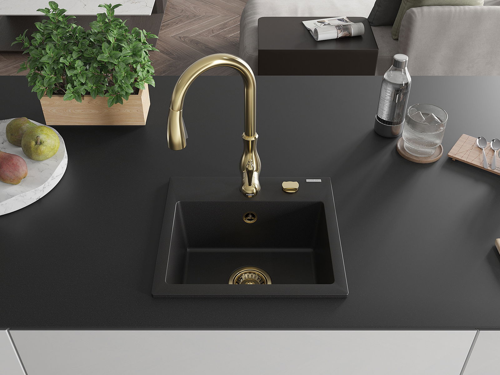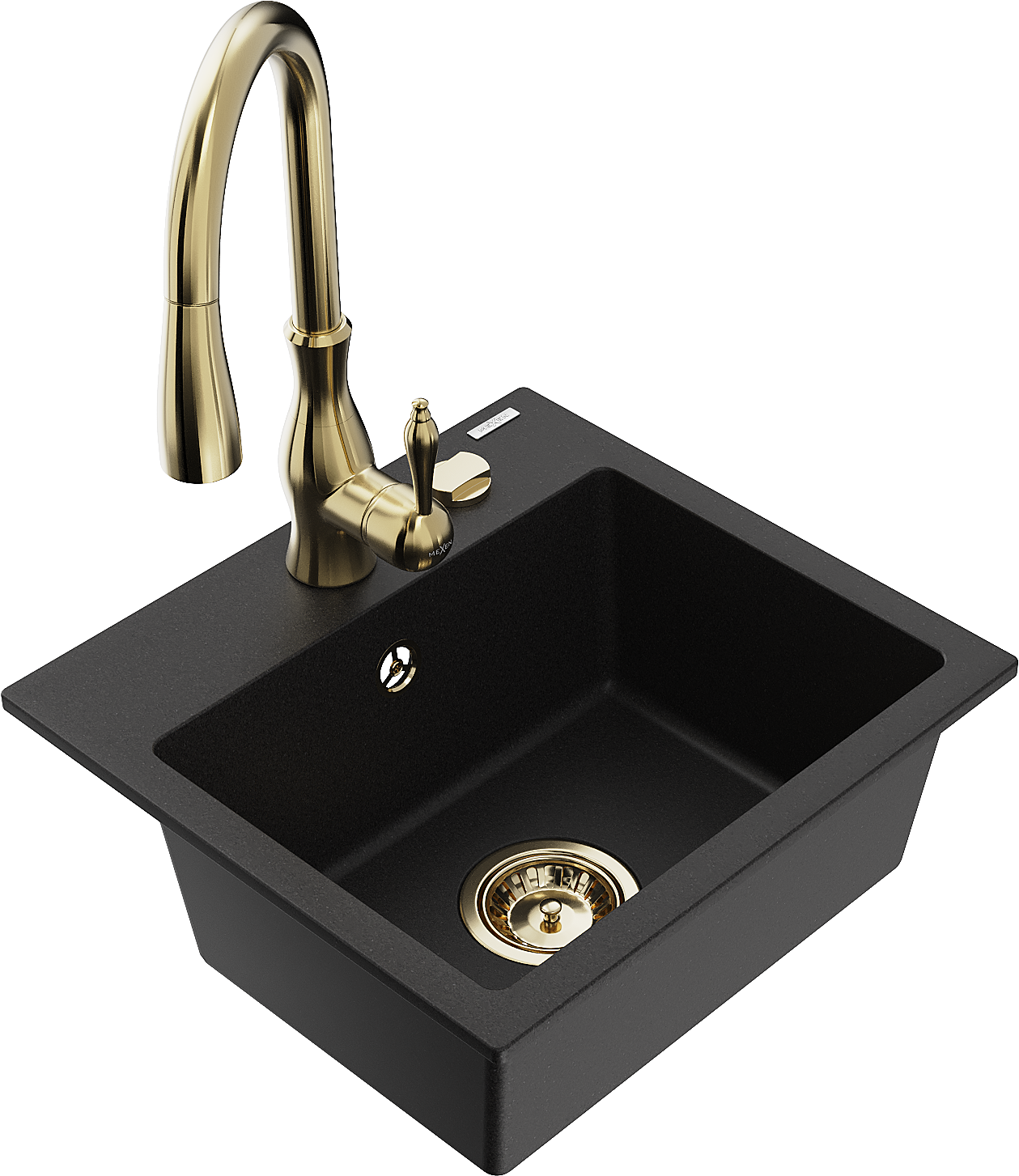 Mexen Milo évier en granit à 1 bac avec robinet de cuisine Savita, noir - 6505-77-672601-50