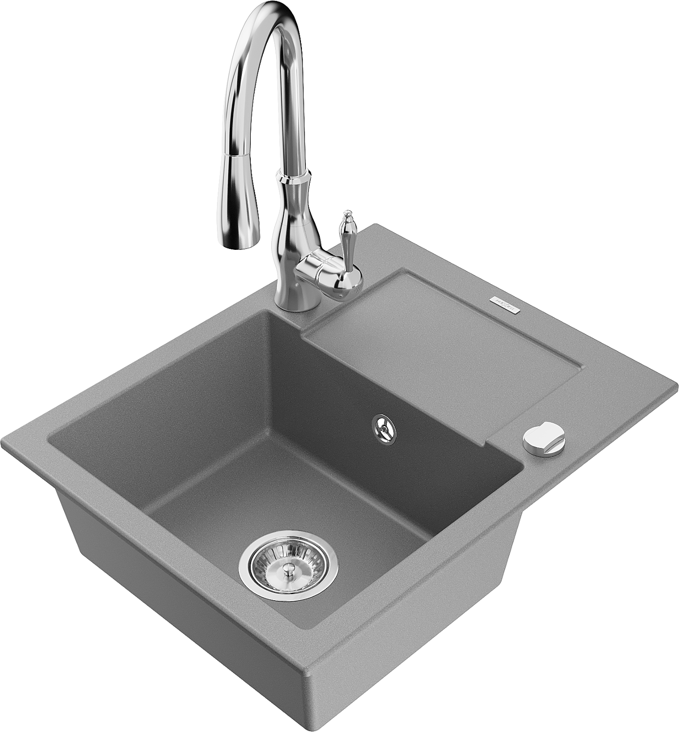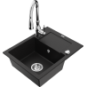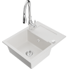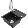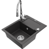 Mexen Enzo évier en granit 1 bac avec égouttoir et robinet de cuisine Savita, gris - 6506-71-672601-00