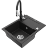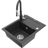 Mexen Enzo évier en granit 1 bac avec égouttoir et robinet de cuisine Savita, gris - 6506-71-672601-71
