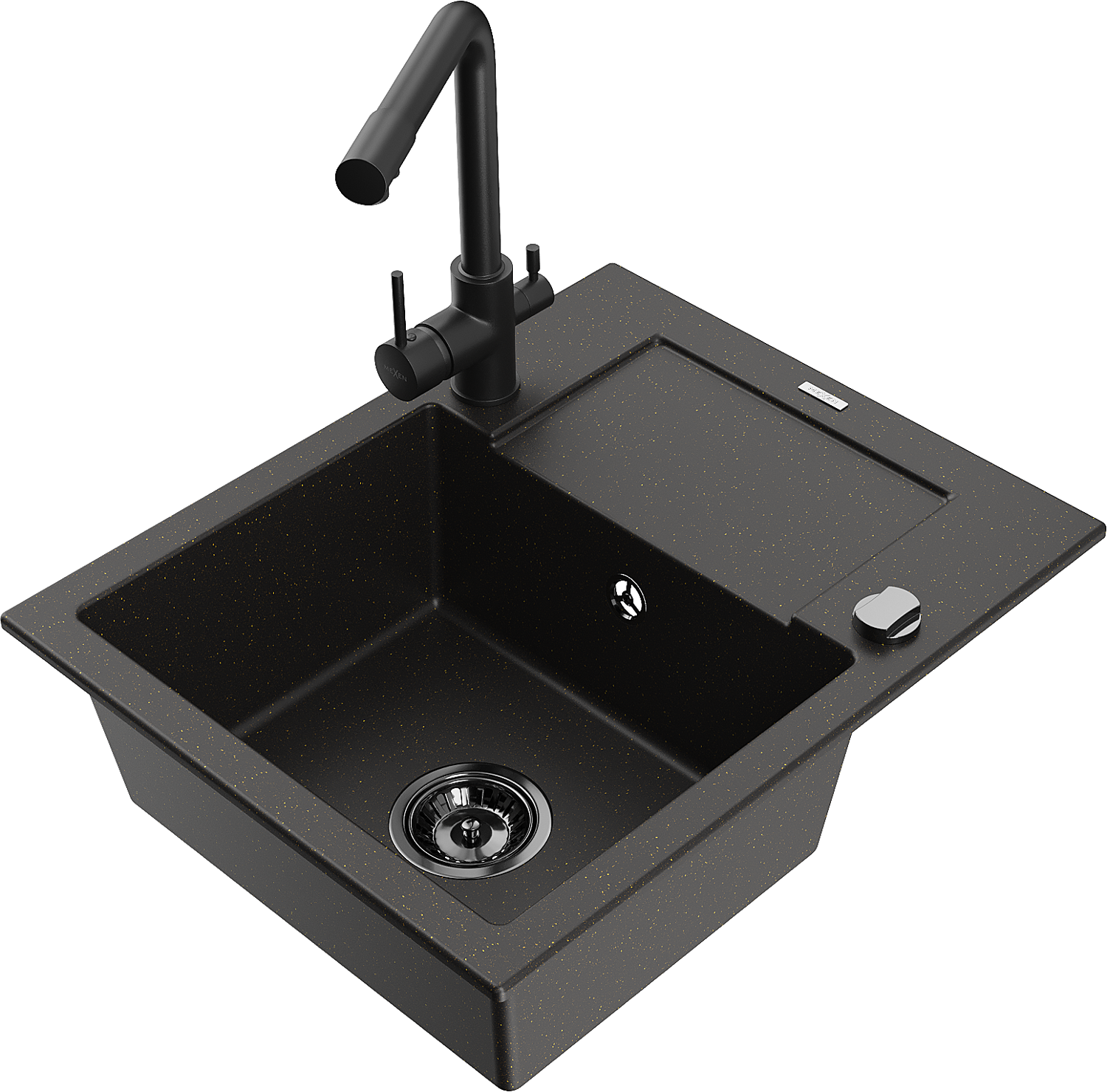 Mexen Enzo évier en granit 1 bac avec égouttoir et mitigeur cuisine Duero, noir/or métallisé - 6506-75-671600-70-B