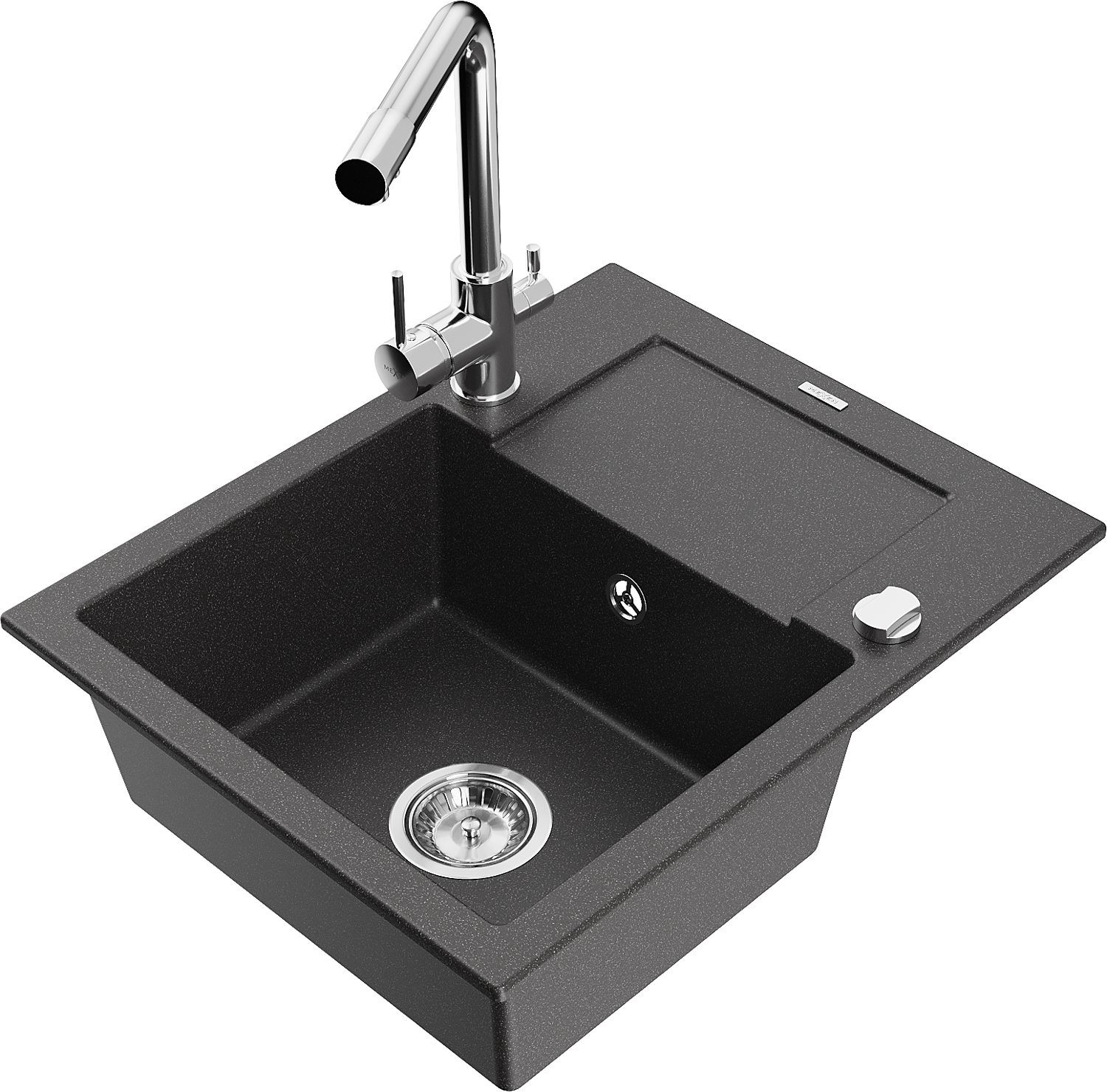 Mexen Enzo évier en granit 1 bac avec égouttoir et robinet de cuisine Duero, noir moucheté - 6506-76-671600-00