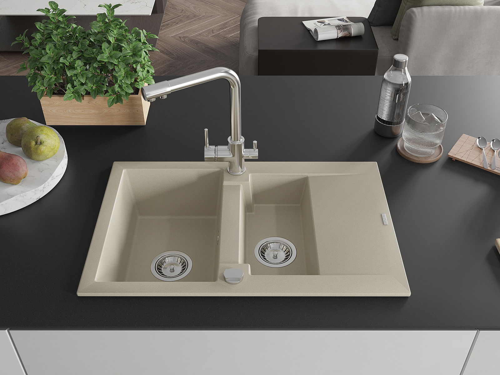 L'évier a été fabriqué en granit de haute qualité. Il constitue un complément élégant et surtout pratique à toute cuisine, quel que soit son style. La haute qualité et la durabilité du granit garantissent une utilisation pendant de nombreuses années.