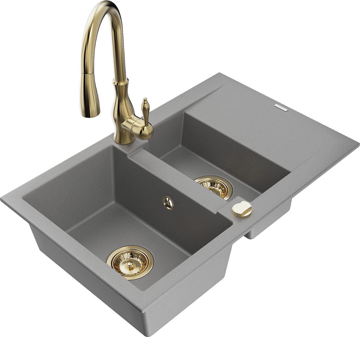 Mexen Gaspar évier en granit 1,5 cuve avec égouttoir et robinet de cuisine Savita, gris - 6507-71-672601-50