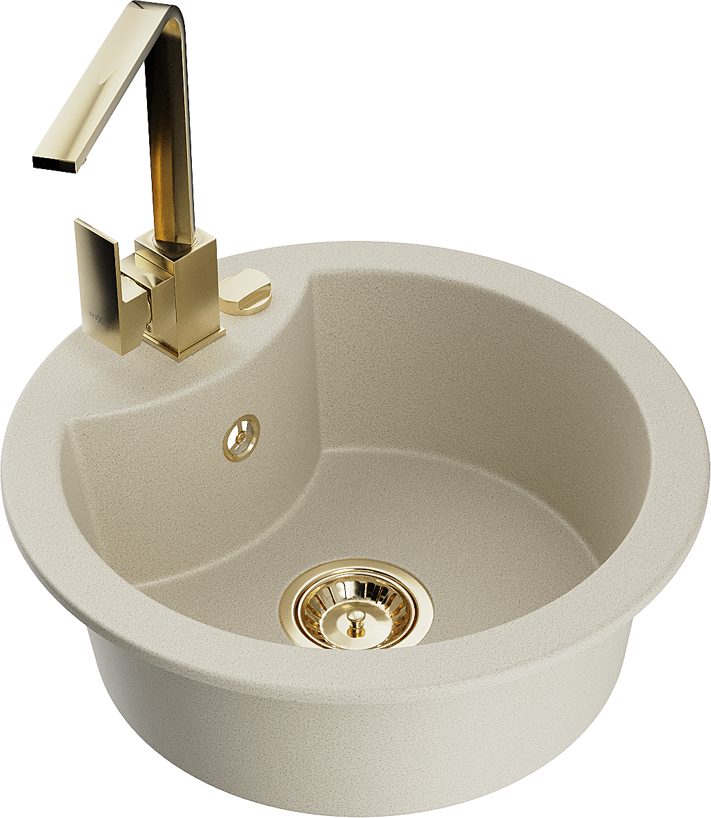 Mexen Diego évier en granit 1 bac avec robinet de cuisine Rita, beige - 6512-69-670300-50