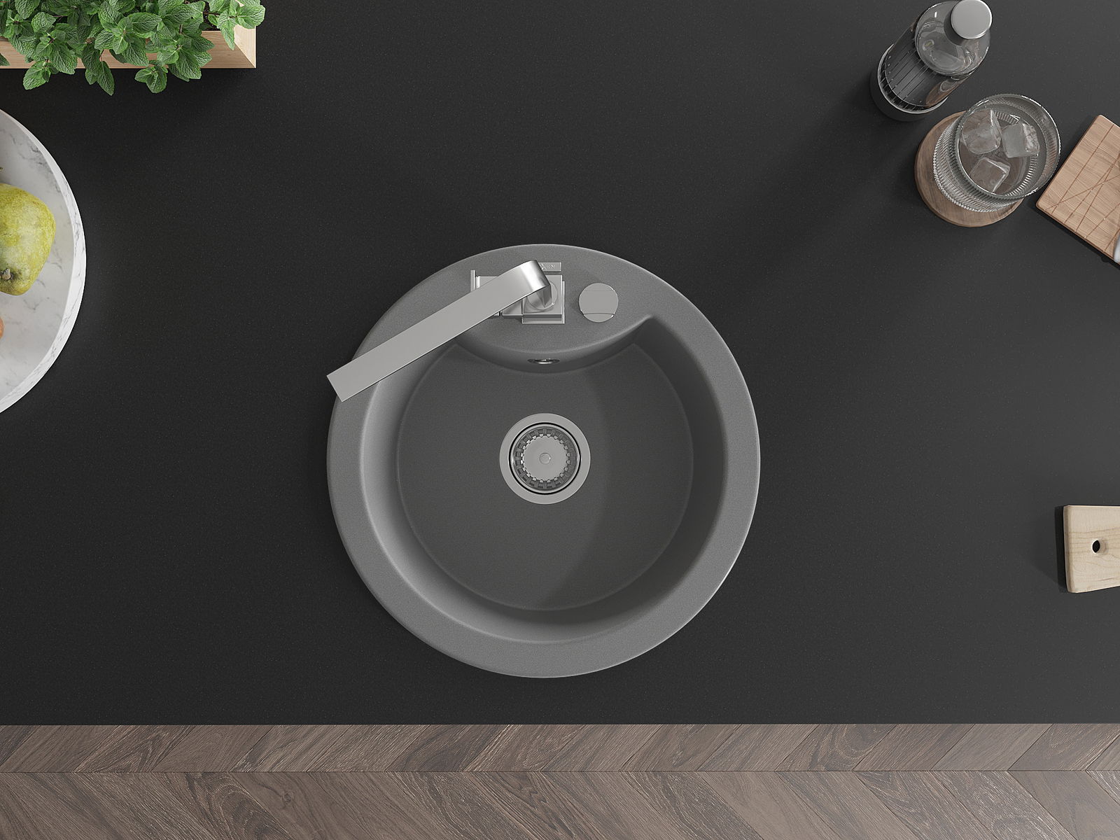 L'évier a un trou sous-meulé de 35 mm de diamètre à percer soi-même. Il peut être utilisé, entre autres, pour installer un distributeur de liquide, ce qui éliminera la présence de bouteilles en plastique dans la cuisine et lui donnera une finition élégante.