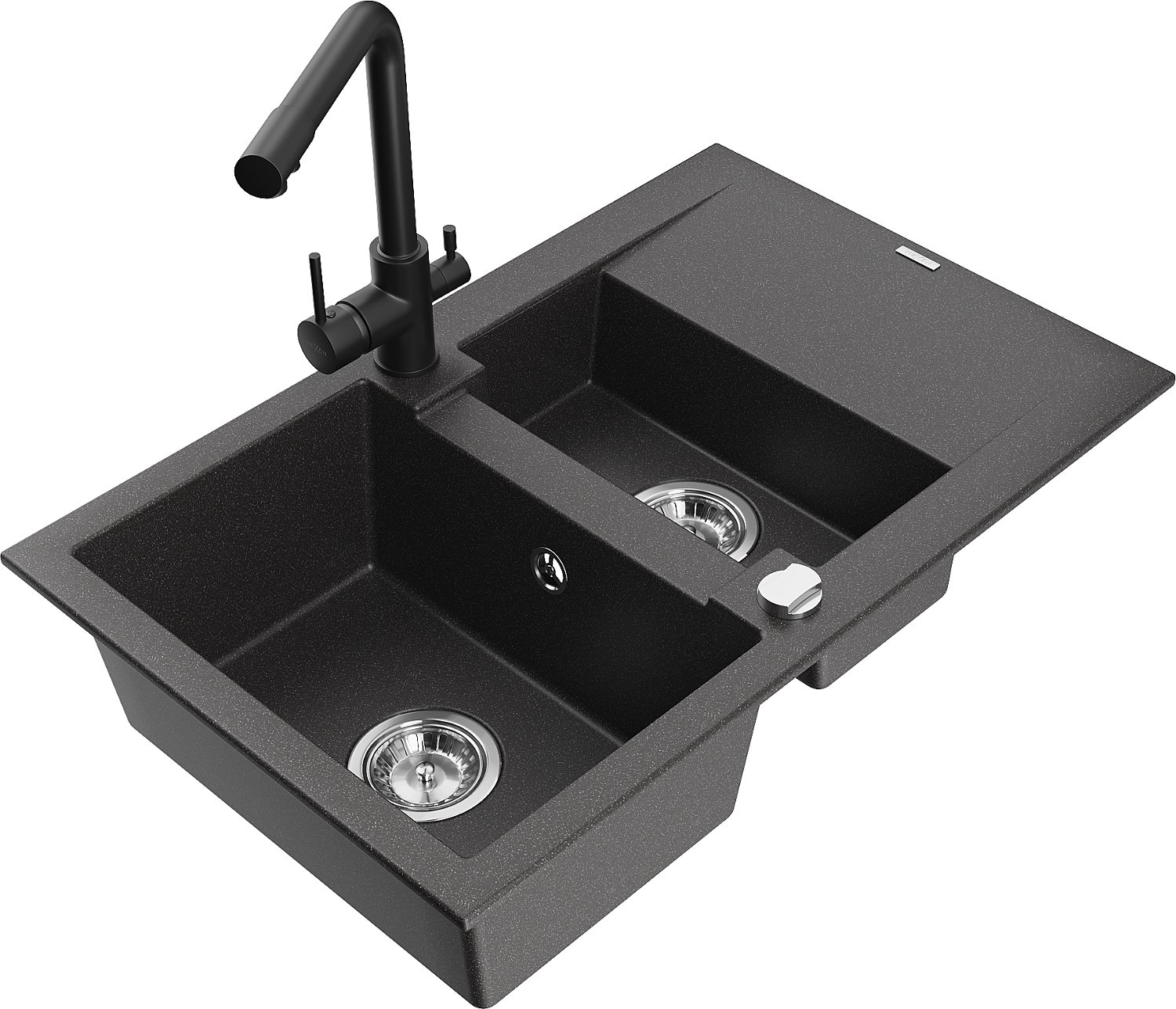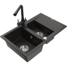 Mexen Gaspar évier en granit 1,5 bac avec égouttoir et robinet de cuisine Duero, noir moucheté - 6507-76-671600-70