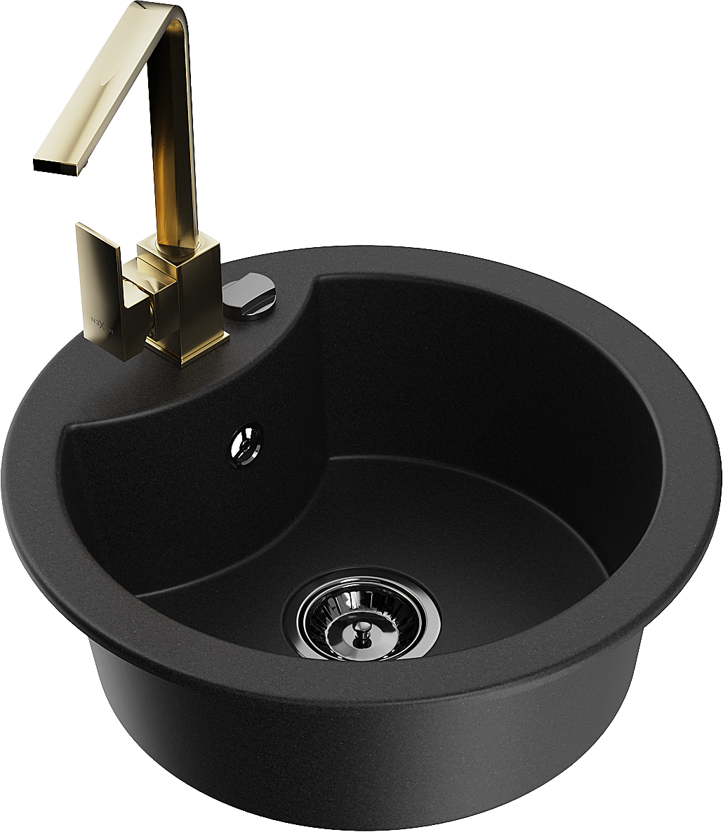 Mexen Diego évier en granit 1 bac avec robinet de cuisine Rita, noir - 6512-77-670300-50-B