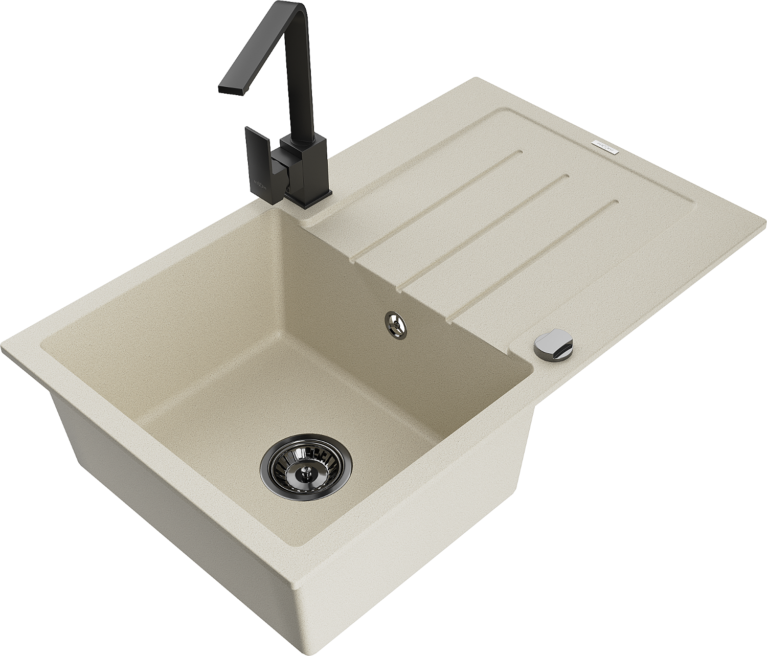 Mexen Bruno évier en granit 1 bac avec égouttoir et mitigeur Rita, beige - 6513-69-670300-70