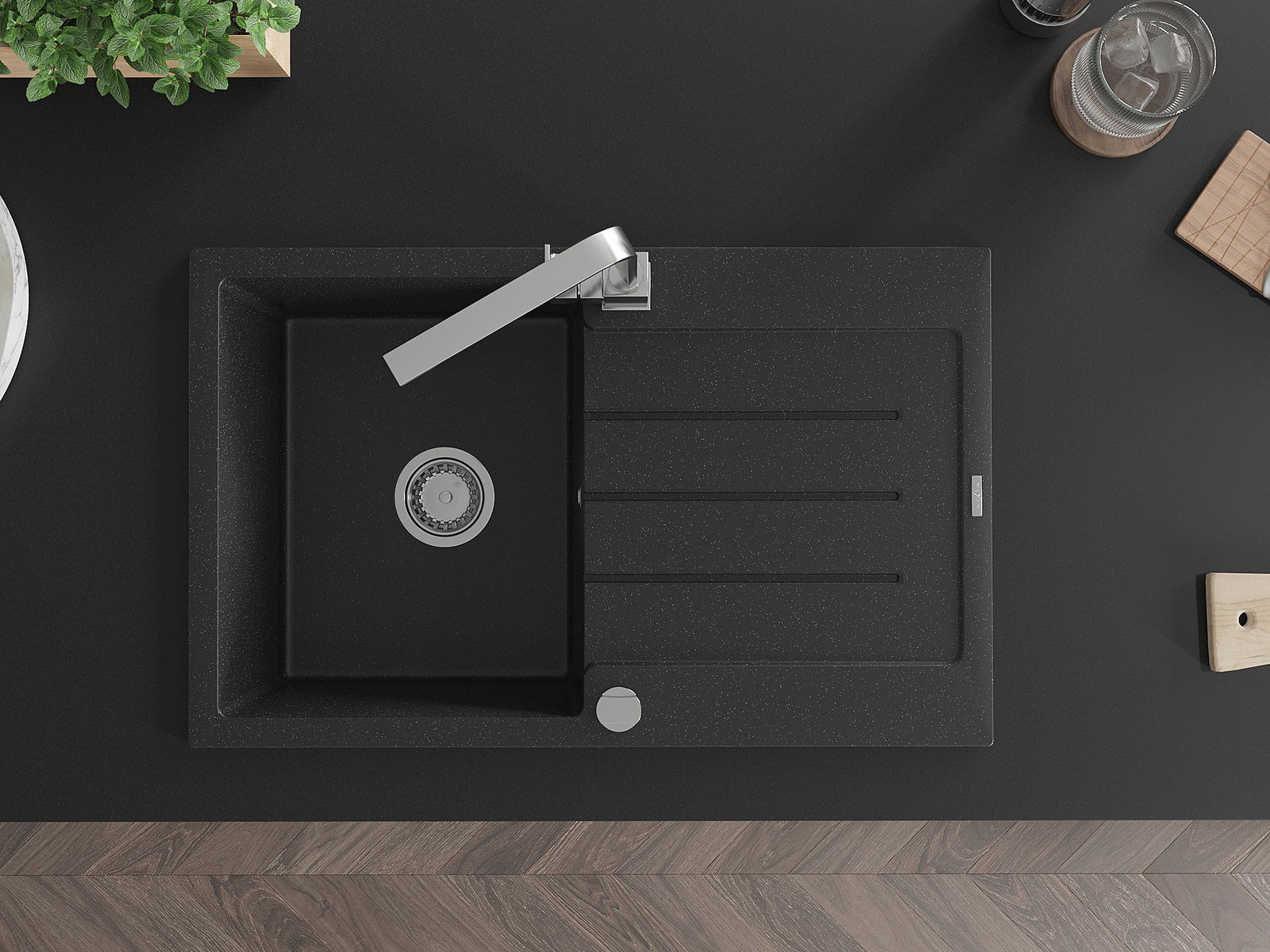La surface de l'évier est très bien durcie, elle se distingue par une résistance exceptionnelle aux dommages mécaniques et aux rayures. Le matériau durable de fabrication permet de profiter de l'apparence de l'évier pendant de nombreuses années d'utilisation.