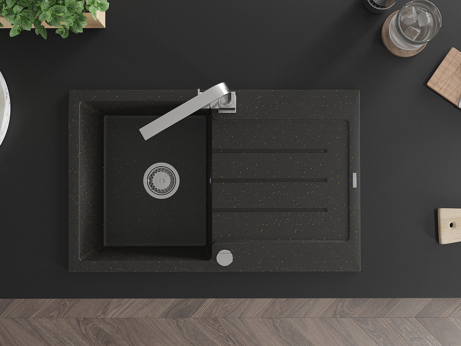 La surface de l'évier est très bien durcie, elle se distingue par une résistance exceptionnelle aux dommages mécaniques et aux rayures. Le matériau durable de fabrication permet de profiter de l'apparence de l'évier pendant de nombreuses années d'utilisation.