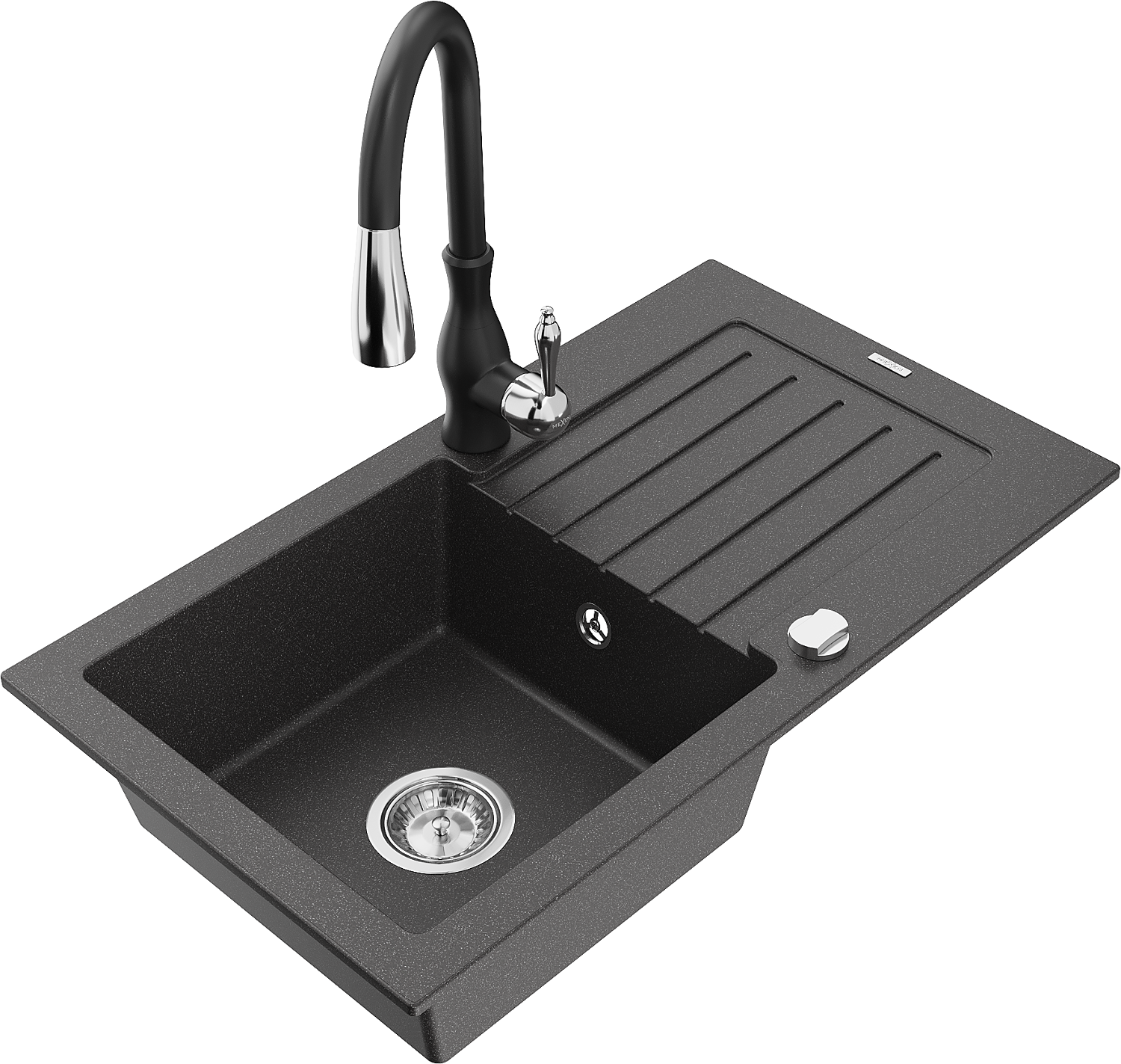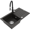 Mexen Pablo évier en granit 1 bac avec égouttoir et mitigeur cuisine Savita, noir moucheté - 6510-76-672601-70