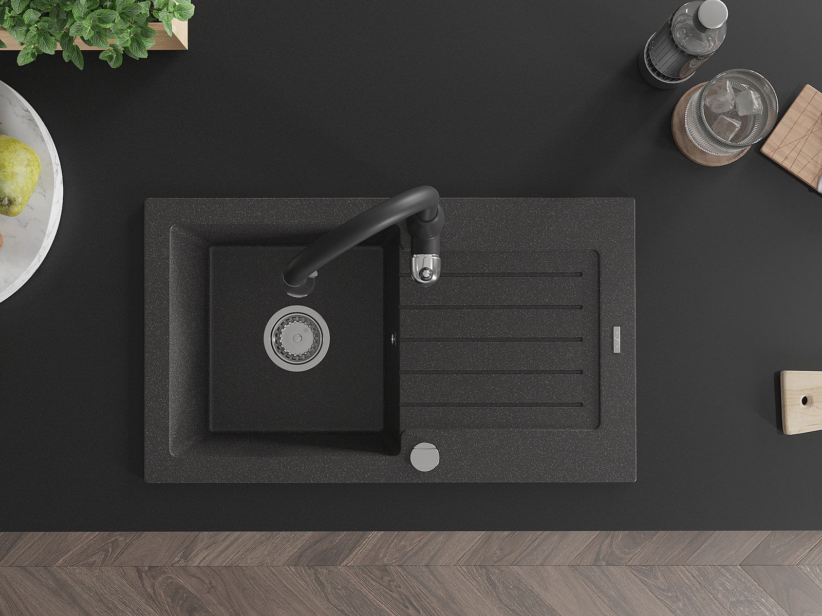 La surface de l'évier est très bien durcie, elle se distingue par une résistance exceptionnelle aux dommages mécaniques et aux rayures. Le matériau durable de fabrication permet de profiter de l'apparence de l'évier pendant de nombreuses années d'utilisation.
