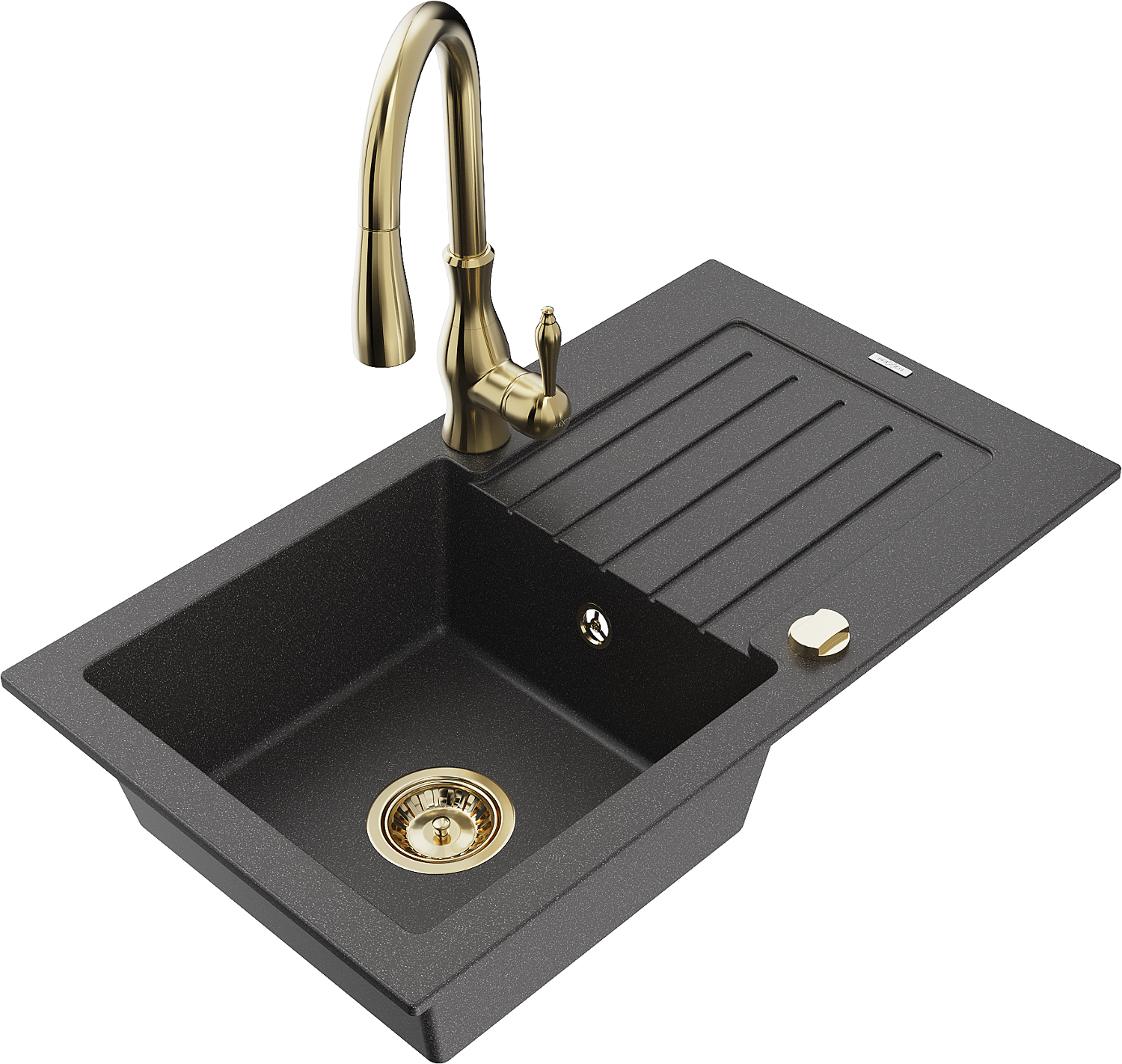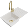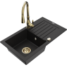 Mexen Pablo évier en granit 1 bac avec égouttoir et robinet de cuisine Savita, noir moucheté - 6510-76-672601-50