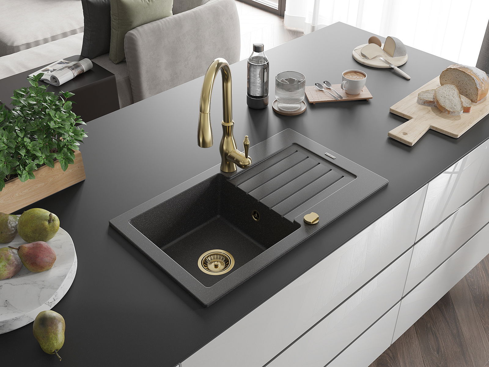 L'évier a été fabriqué en granit de haute qualité. Il constitue un complément élégant et surtout pratique à toute cuisine, quel que soit son style. La haute qualité et la durabilité du granit garantissent une utilisation pendant de nombreuses années.