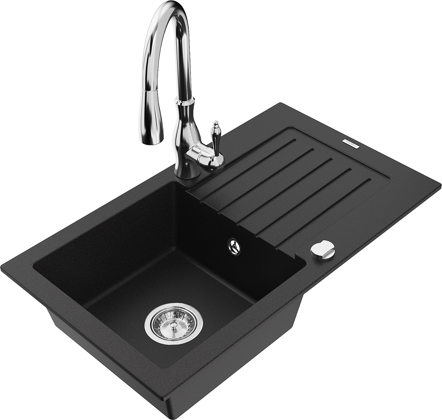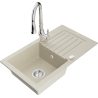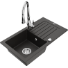 Mexen Pablo évier de cuisine en granit 1 bac avec égouttoir et robinet de cuisine Savita, noir - 6510-77-672601-00