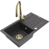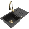 Mexen Pablo évier en granit 1 bac avec égouttoir et robinet de cuisine Savita, noir - 6510-77-672601-50