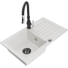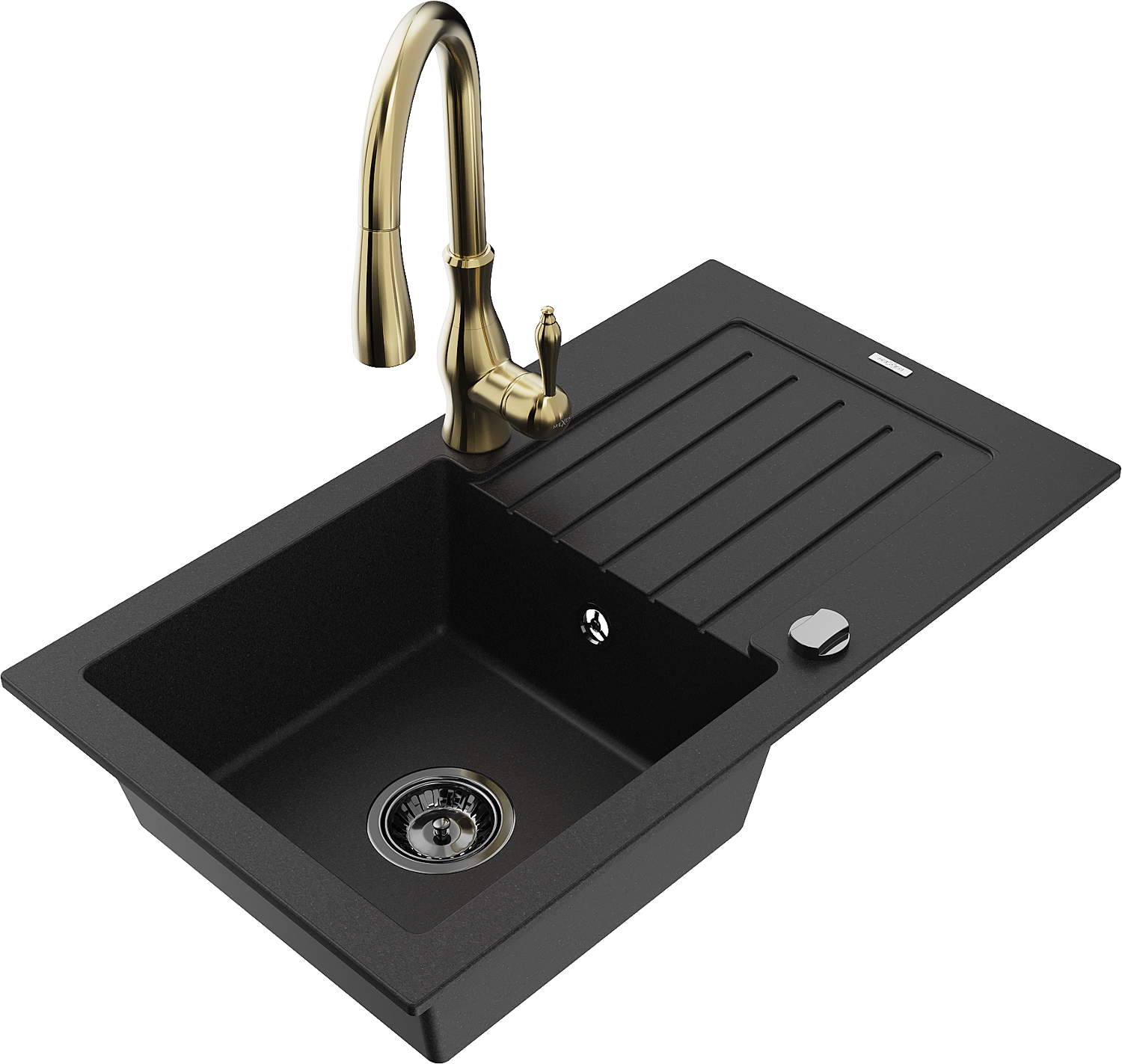 Mexen Pablo évier en granit 1 bac avec égouttoir et robinet de cuisine Savita, noir - 6510-77-672601-50-B
