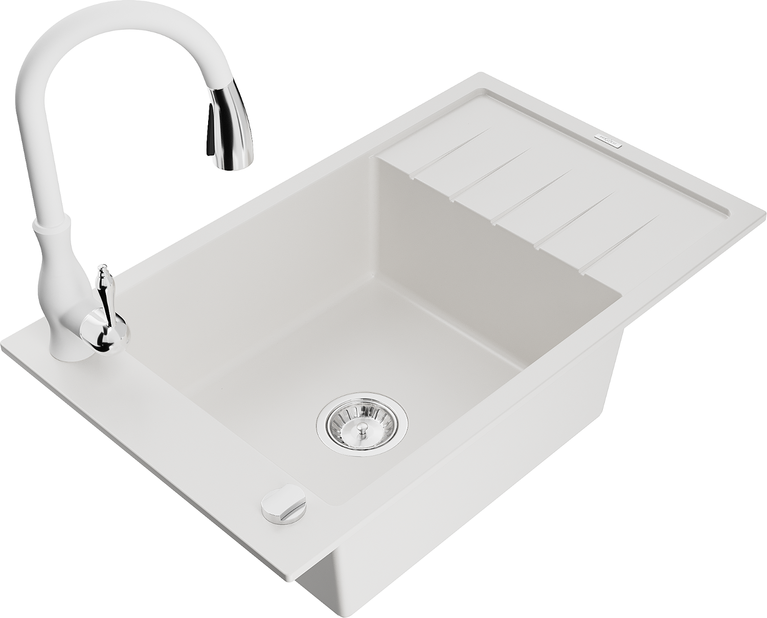 Mexen Elias évier en granit 1 bac avec égouttoir et robinet de cuisine Savita, blanc - 6511-20-672601-20