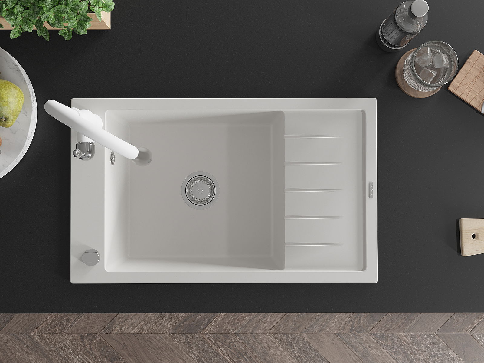 L'évier se distingue par une résistance exceptionnelle aux hautes températures et à leurs changements soudains, ce qui évite toute déformation même sous l'effet prolongé de l'eau chaude.