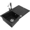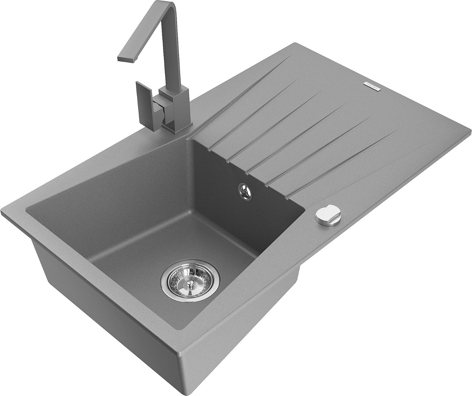 Mexen Cesar évier en granit 1 bac avec égouttoir et robinet de cuisine Rita, gris - 6514-71-670300-71