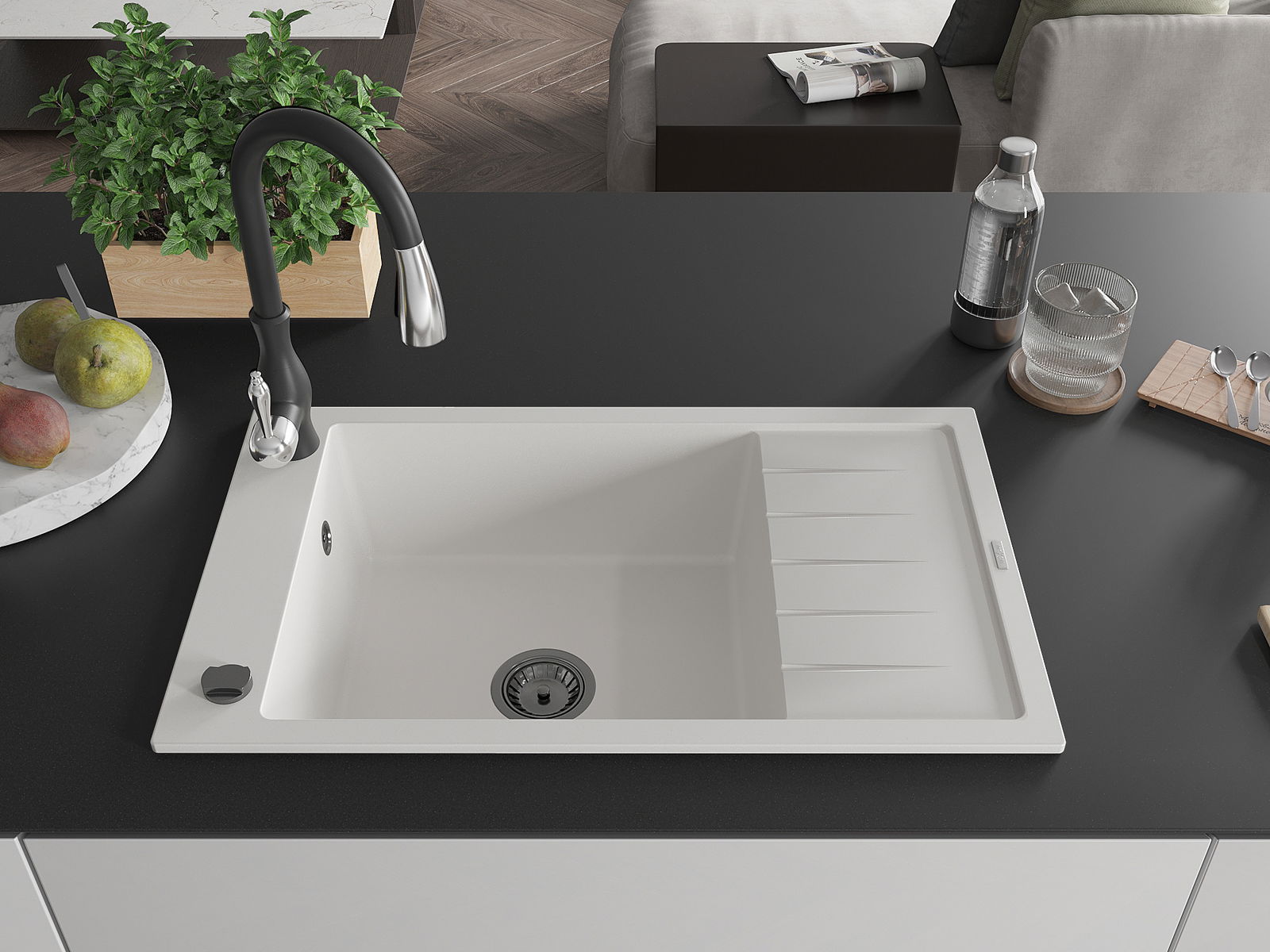 L'évier a été fabriqué en granit de haute qualité. Il constitue un complément élégant et surtout pratique à toute cuisine, quel que soit son style. La haute qualité et la durabilité du granit garantissent une utilisation pendant de nombreuses années.