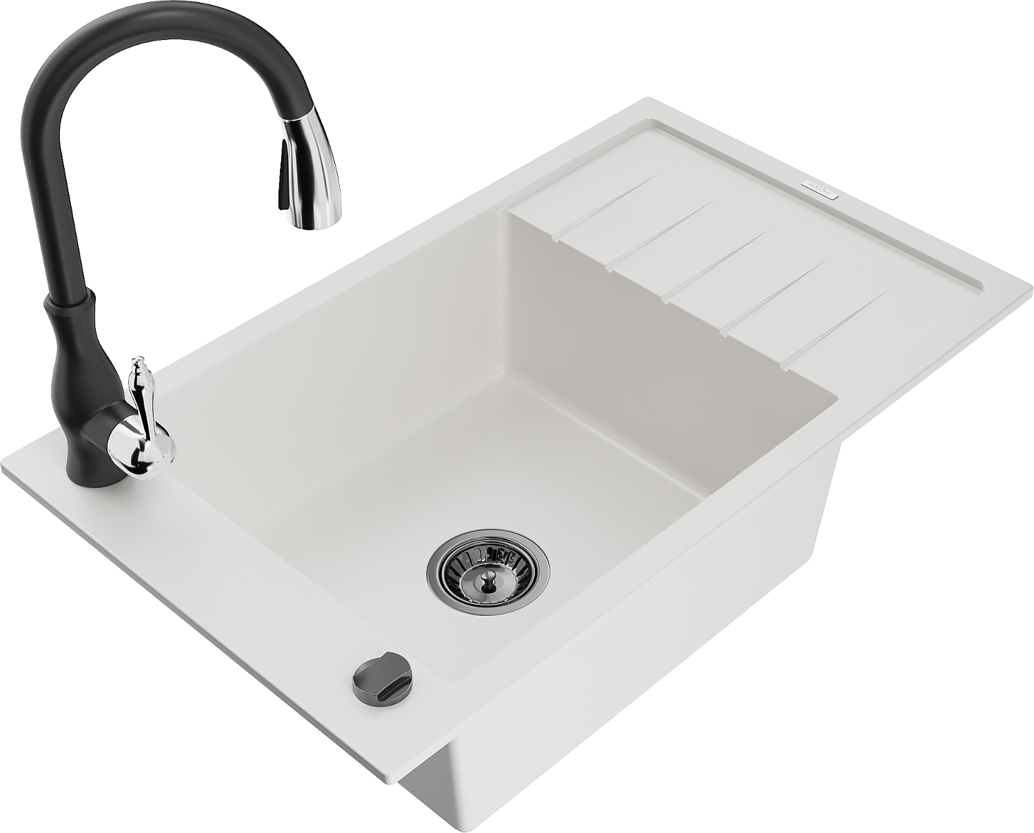 Mexen Elias évier de cuisine en granit 1 bac avec égouttoir et robinet de cuisine Savita, blanc - 6511-20-672601-70