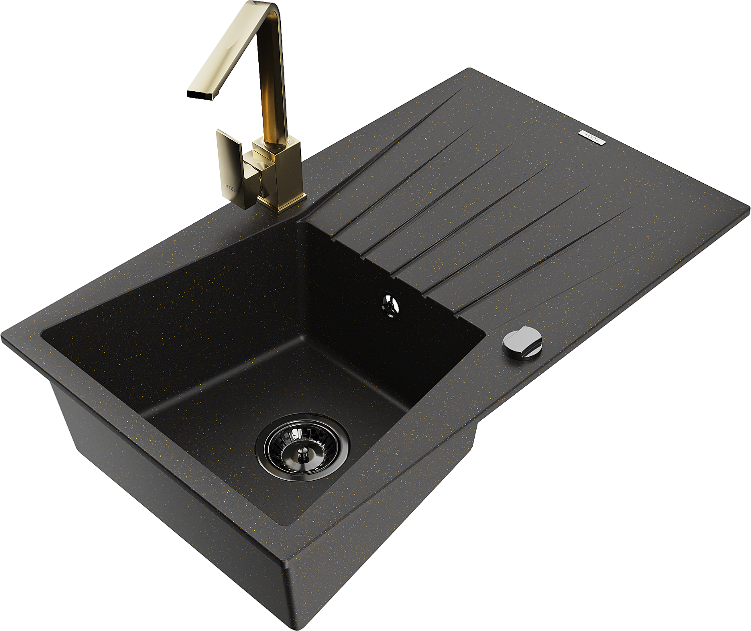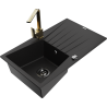 Mexen Cesar évier en granit 1 bac avec égouttoir et mitigeur cuisine Rita, noir/doré métallisé - 6514-75-670300-50-B