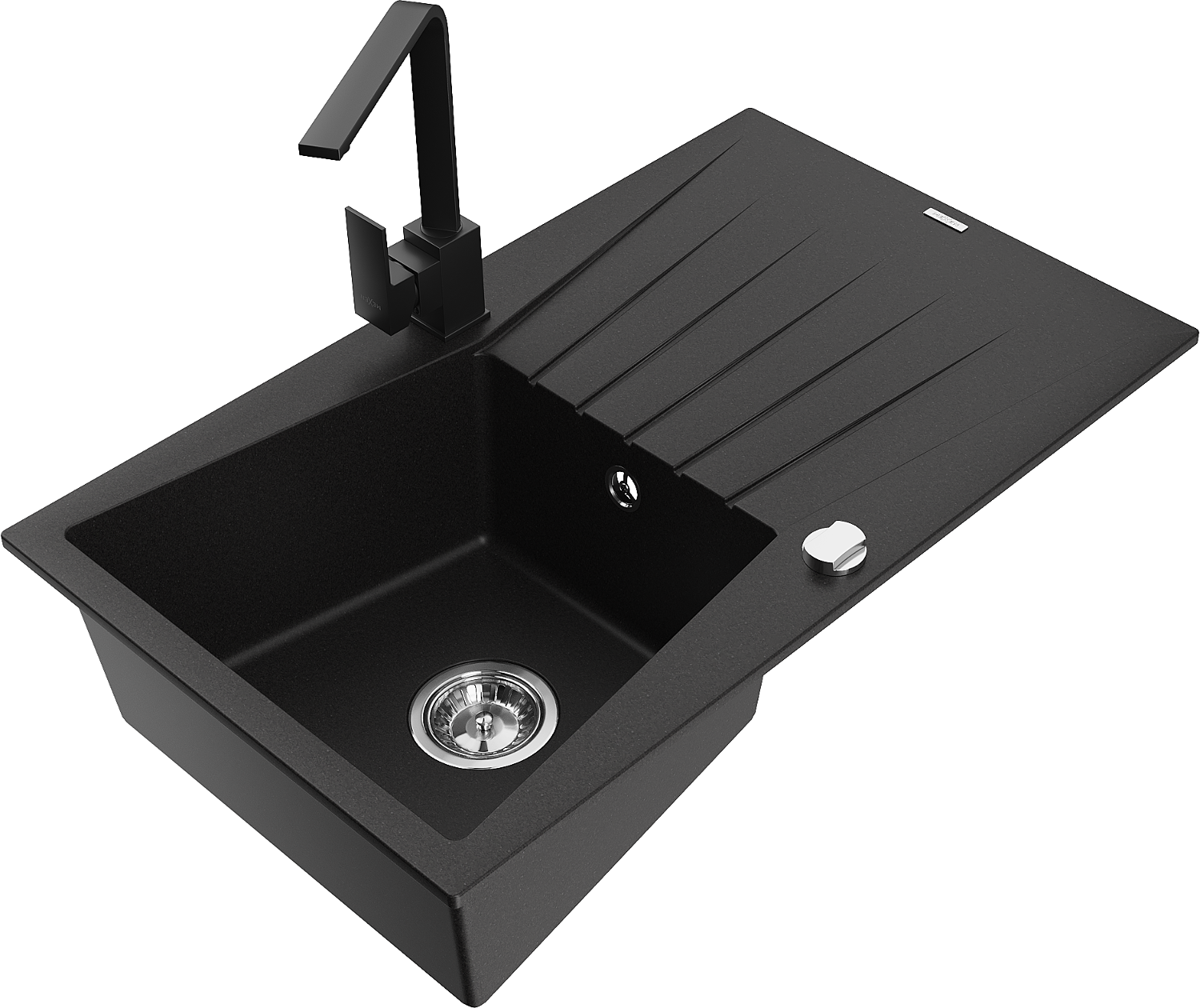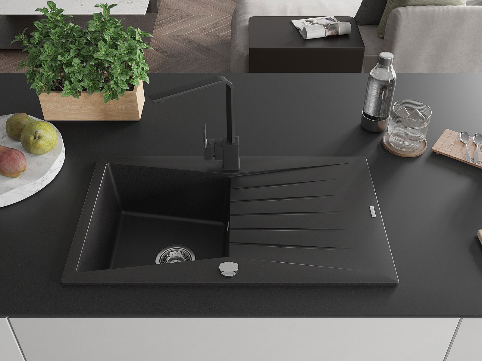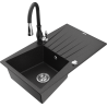 Mexen Cesar évier en granit à 1 bac avec égouttoir et robinet de cuisine Rita, noir - 6514-77-670300-70
