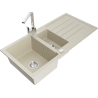 Mexen Andres évier en granit 1,5 bac avec égouttoir et robinet de cuisine Rita, blanc - 6515-20-670300-00