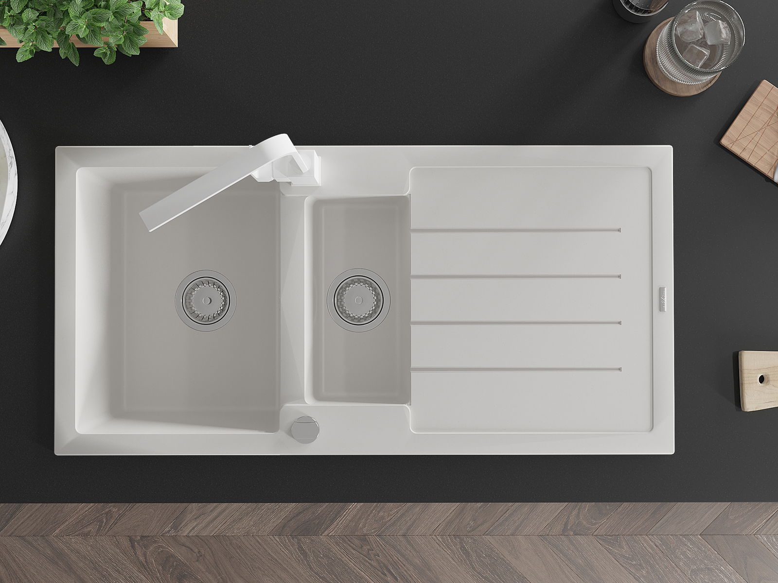 La surface de l'évier est très bien durcie, elle se distingue par une résistance exceptionnelle aux dommages mécaniques et aux rayures. Le matériau durable de fabrication permet de profiter de l'apparence de l'évier pendant de nombreuses années d'utilisation.