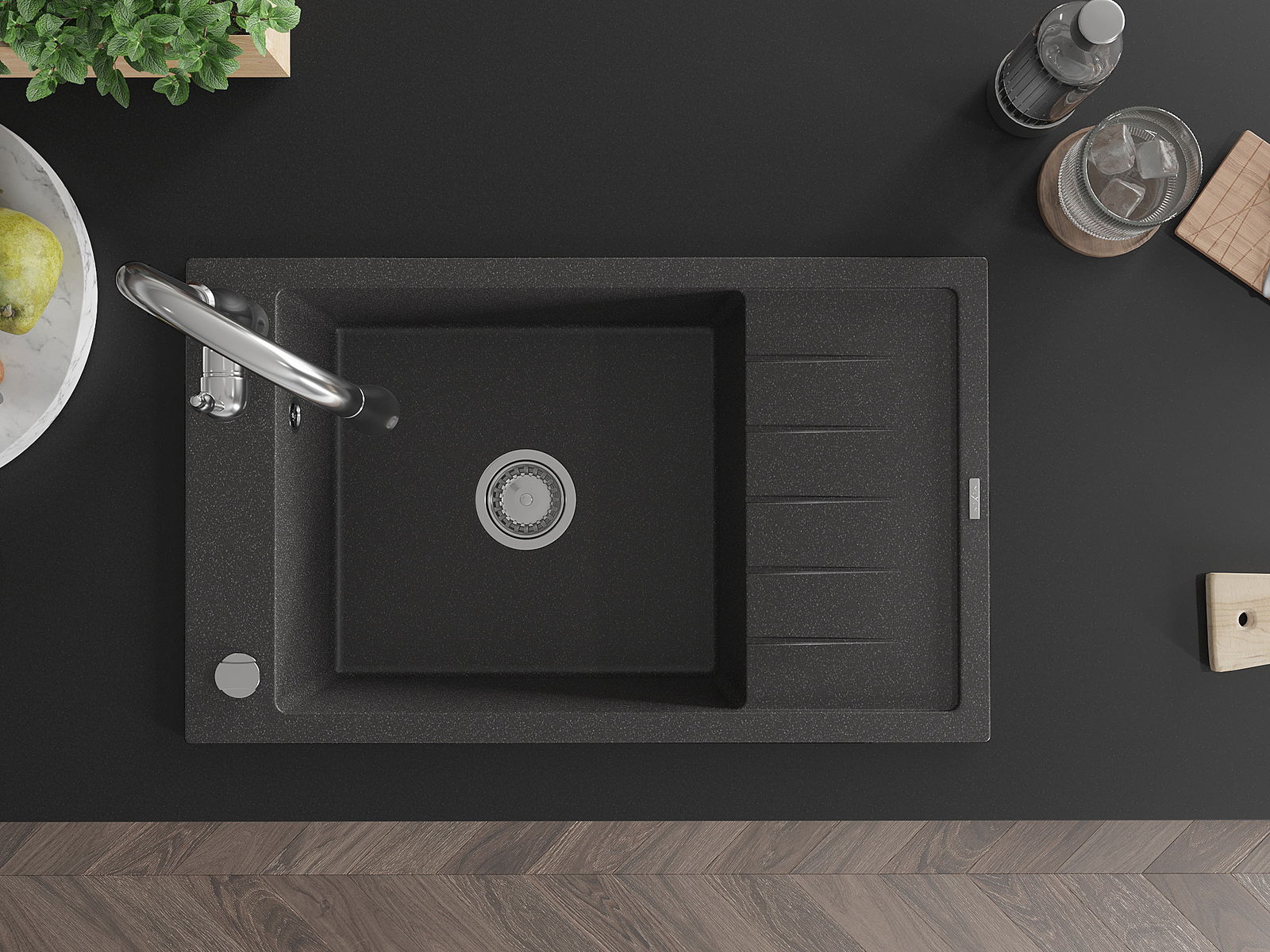 L'évier a été fabriqué en granit de haute qualité. Il constitue un complément élégant et surtout pratique à toute cuisine, quel que soit son style. La haute qualité et la durabilité du granit garantissent une utilisation pendant de nombreuses années.